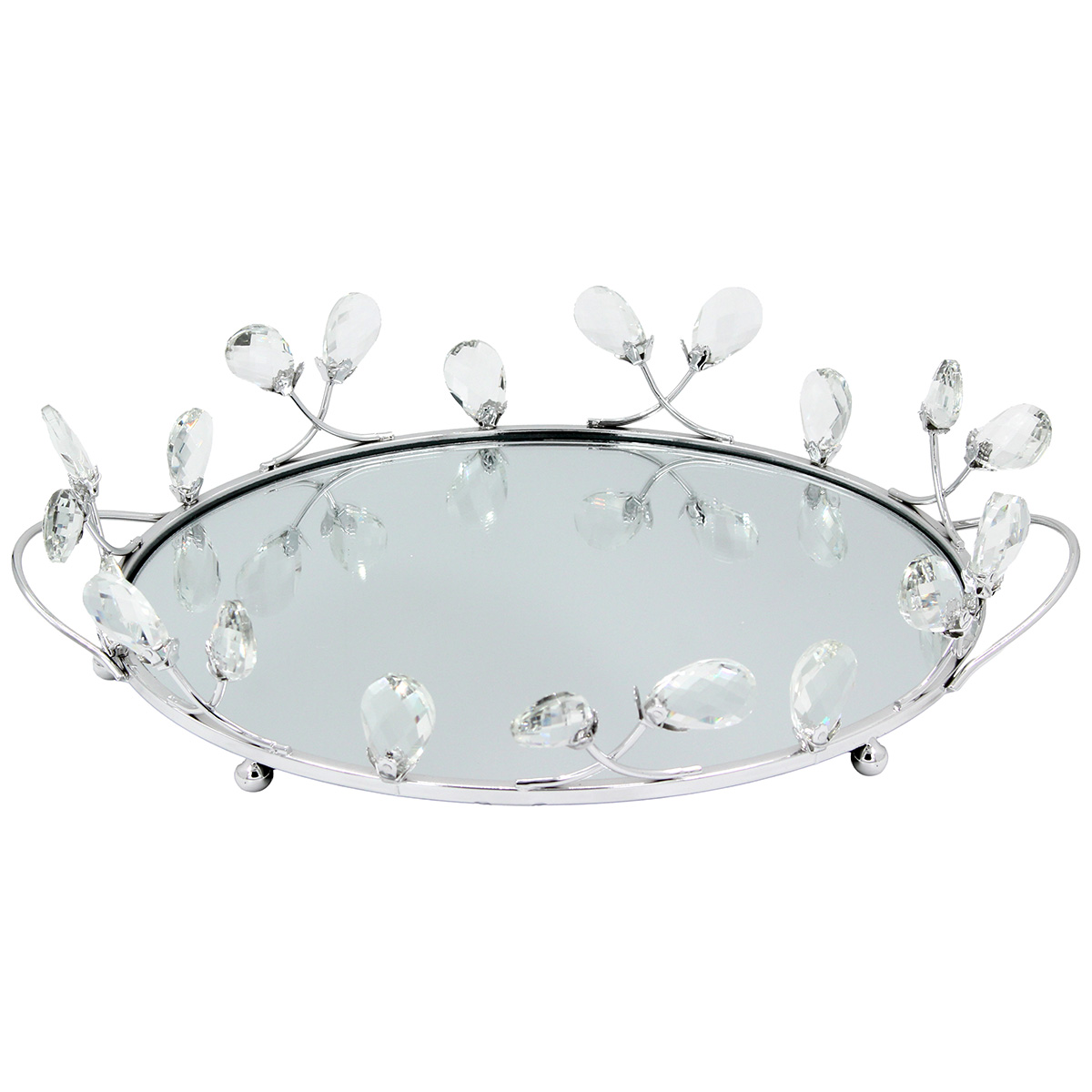 Διακοσμητικό - Δίσκος μεταλλικός 36Χ32Χ7 εκ. Ασημί με καθρέπτη και κρύσταλλα