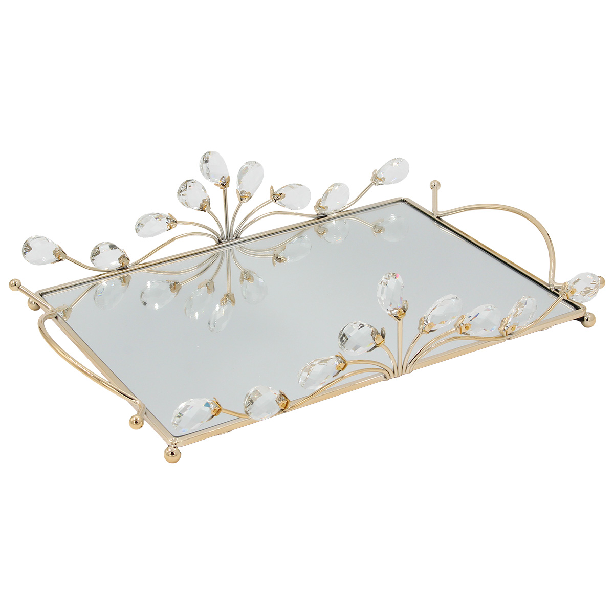 Διακοσμητικό - Δίσκος μεταλλικός 38Χ28Χ10 εκ. Χρυσός με καθρέπτη και κρύσταλλα