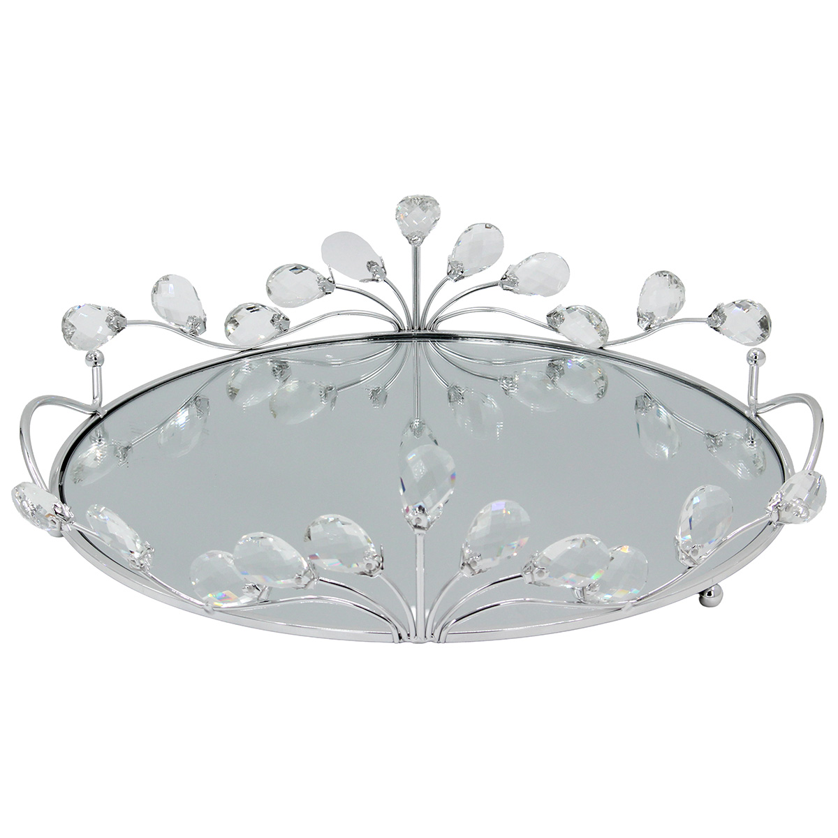 Διακοσμητικό - Δίσκος μεταλλικός 38Χ37Χ10 εκ. Ασημί με καθρέπτη και κρύσταλλα