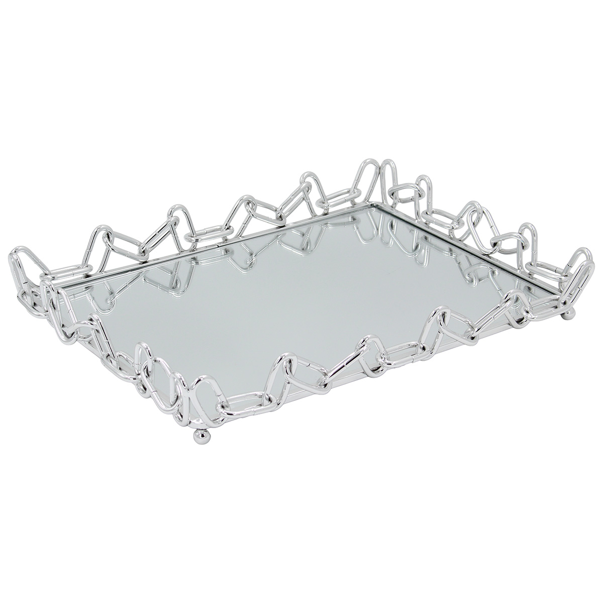 Διακοσμητικό - Δίσκος μεταλλικός 40Χ29Χ5,5 εκ. Ασημί με καθρέπτη