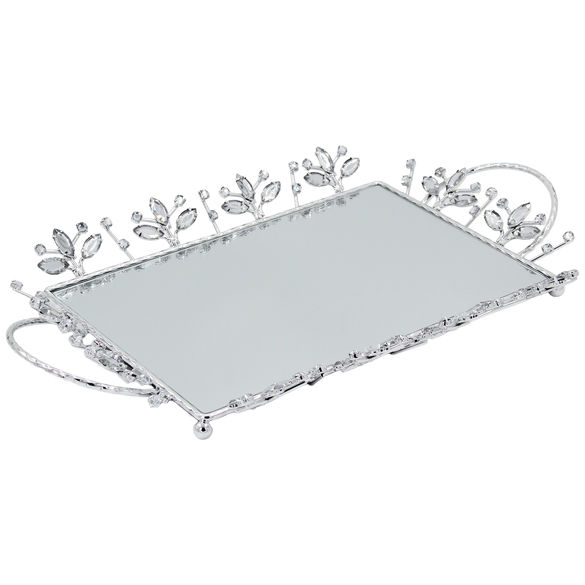 Διακοσμητικό - Δίσκος μεταλλικός 43Χ26Χ4 εκ. Ασημί με καθρέπτη και κρύσταλλα
