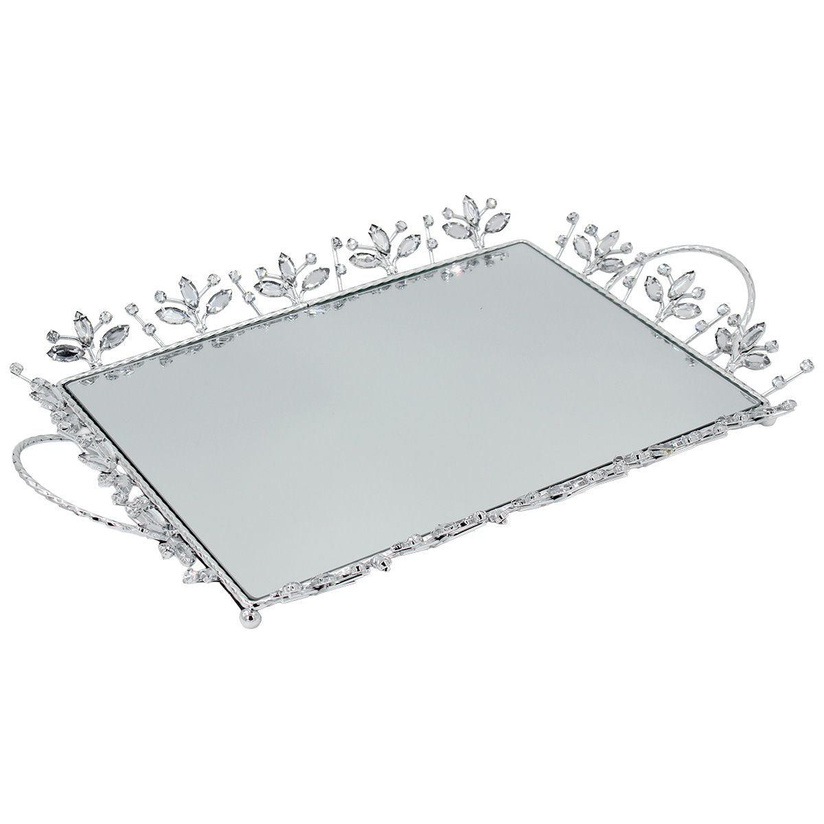 Διακοσμητικό - Δίσκος μεταλλικός 49Χ32Χ4,5 εκ. Ασημί με καθρέπτη και κρύσταλλα
