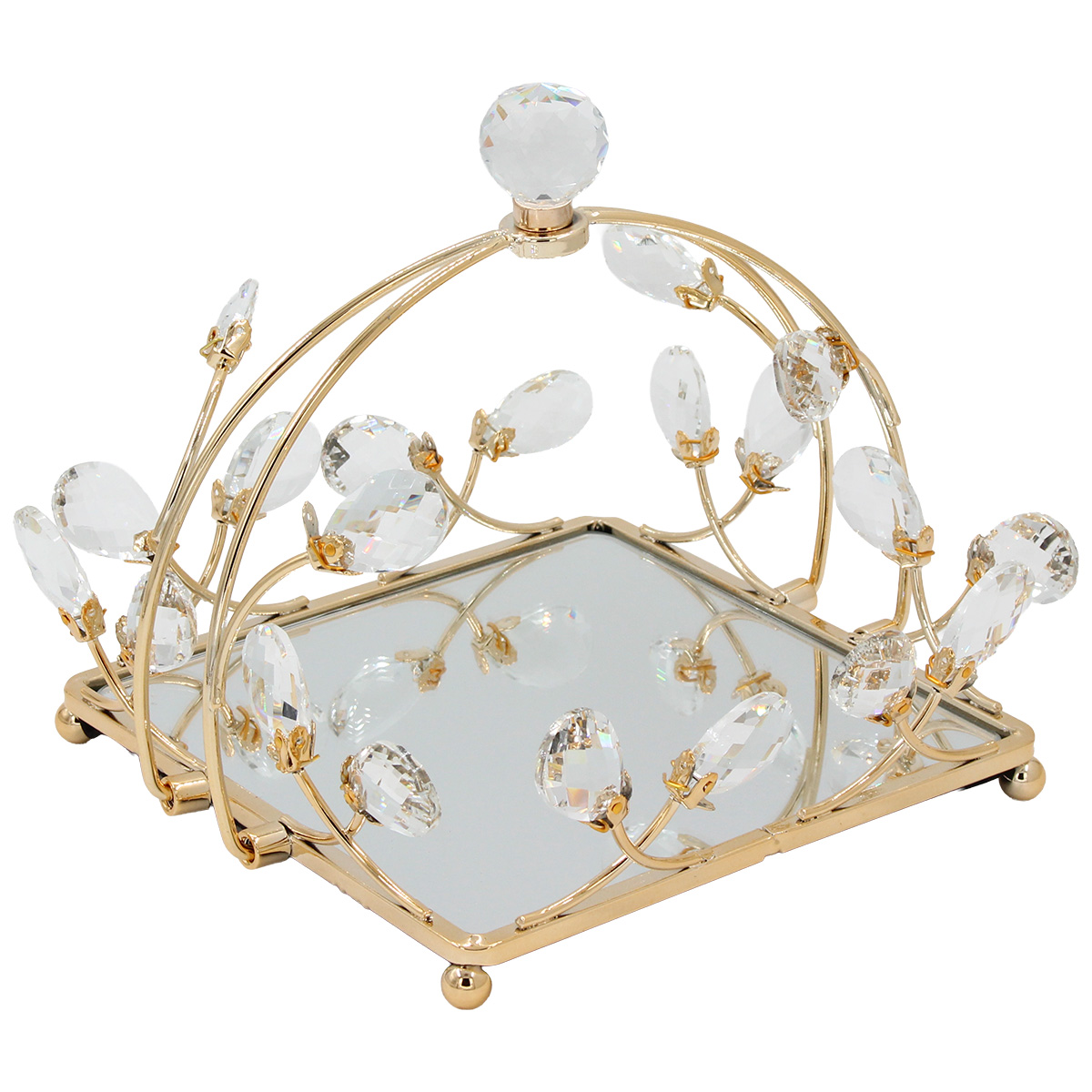 Διακοσμητικό - Δίσκος μεταλλικός με λαβή 22Χ21Χ18 εκ. Χρυσός με κρύσταλλα και καθρέπτη - KESKOR 43268-2