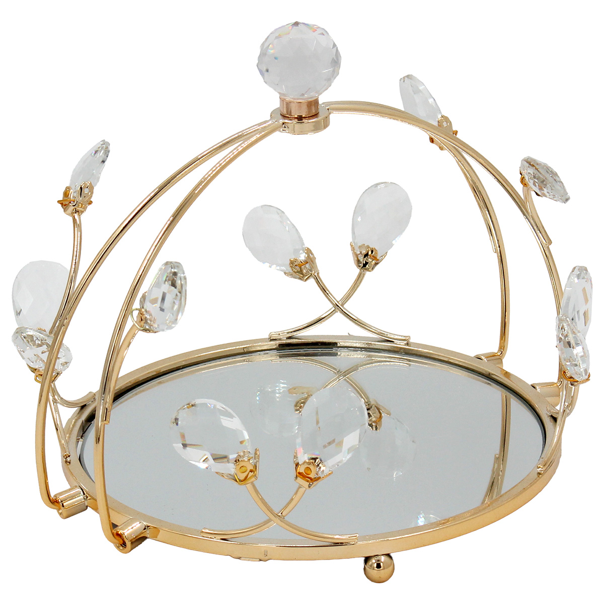 Διακοσμητικό - Δίσκος μεταλλικός με λαβή Φ22Χ18 εκ. Χρυσός με κρύσταλλα και καθρέπτη