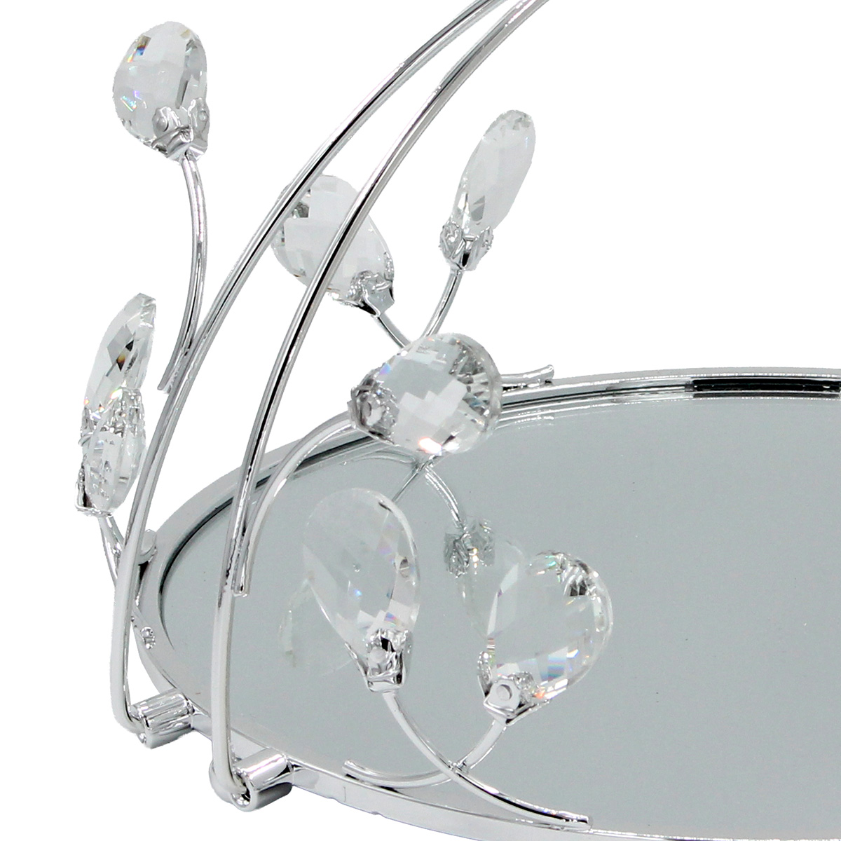 Διακοσμητικό - Δίσκος μεταλλικός με λαβή Φ30Χ21 εκ. Ασημί με κρύσταλλα και καθρέπτη