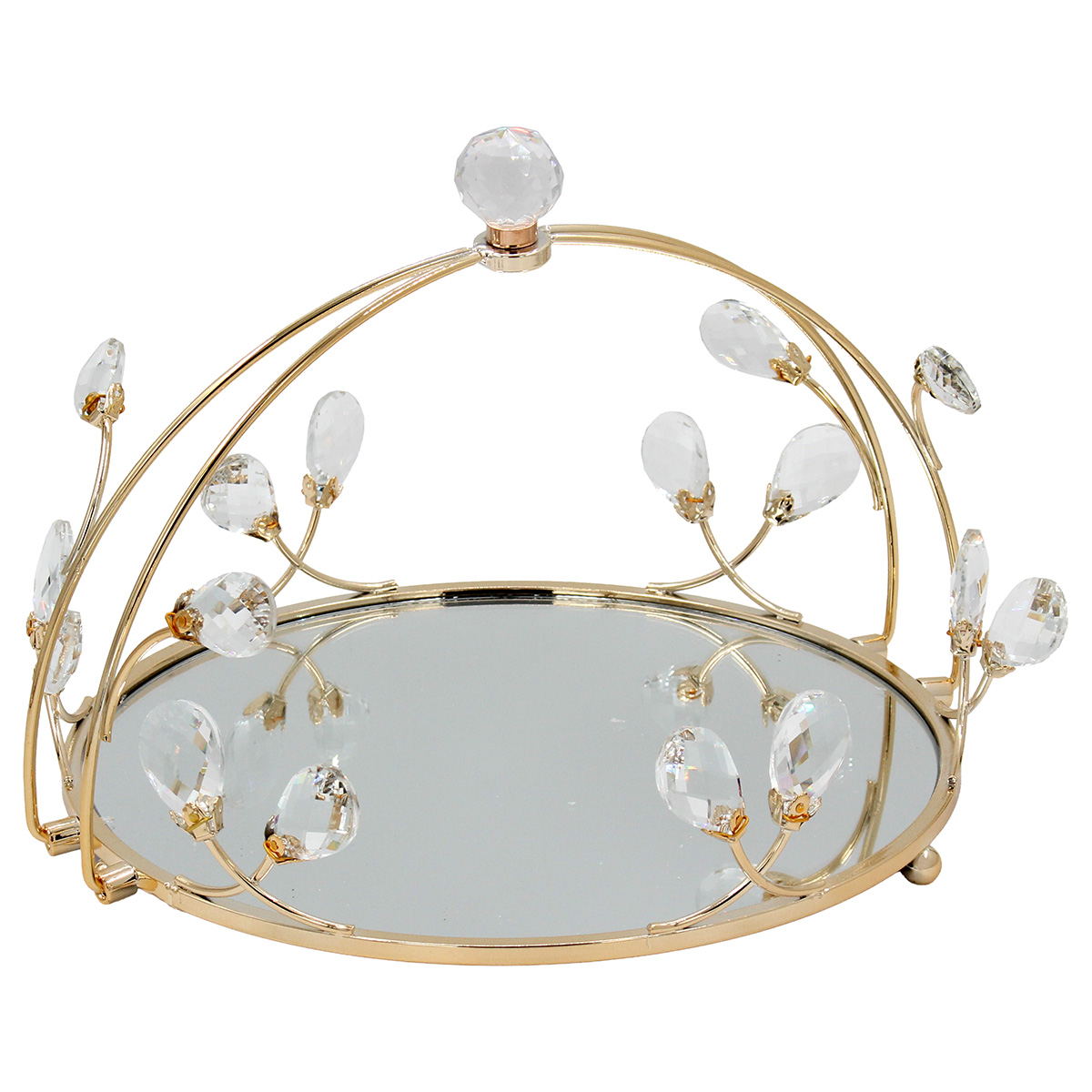 Διακοσμητικό - Δίσκος μεταλλικός με λαβή Φ30Χ21 εκ. Χρυσός με κρύσταλλα και καθρέπτη