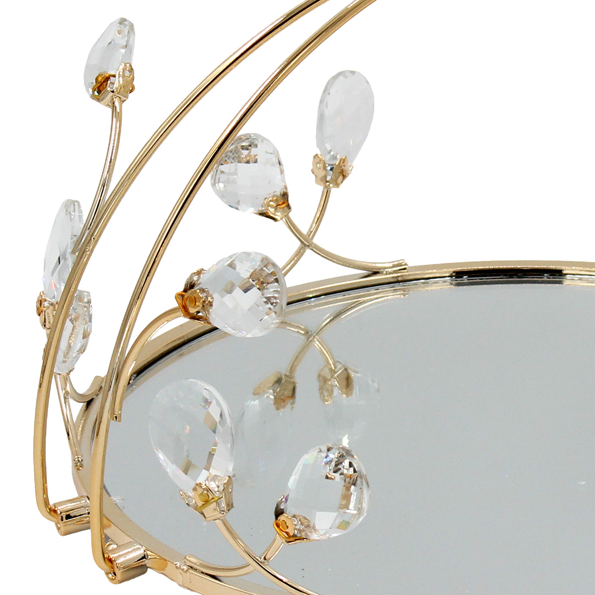 Αυτός ο μεταλλικός δίσκος με λαβή, καθρέπτη και κρύσταλλα προσφέρει εντυπωσιακή παρουσία. Ιδανικός για σερβίρισμα.