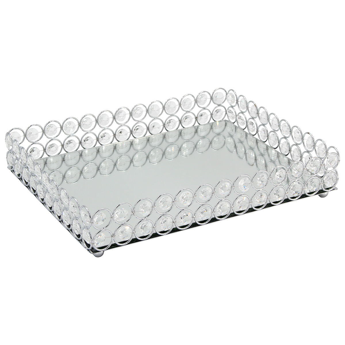 Δίσκος μεταλλικός ορθογώνιος 30Χ23Χ6 εκ. Ασημί με κρύσταλλα και καθρέπτη