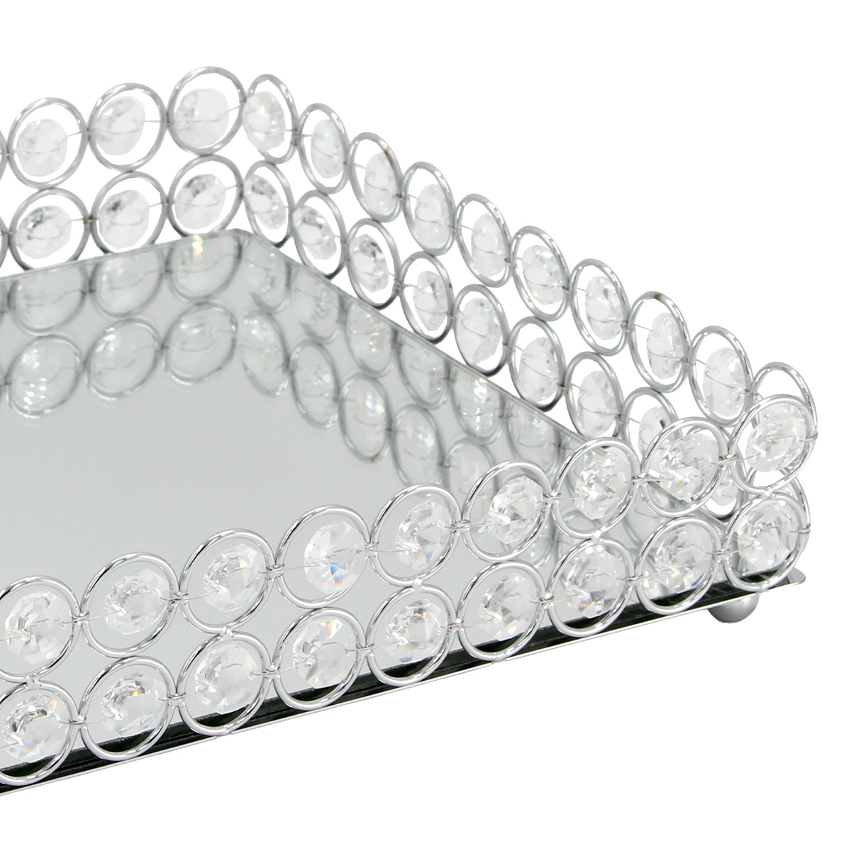 Αυτός ο δίσκος μεταλλικός ορθογώνιος 30Χ23Χ6 εκ. σε ασημί με κρύσταλλα και καθρέπτη συνδυάζει κομψότητα με χρηστικότητα. Κατάλληλος για καθημερινή ή εορταστική χρήση.