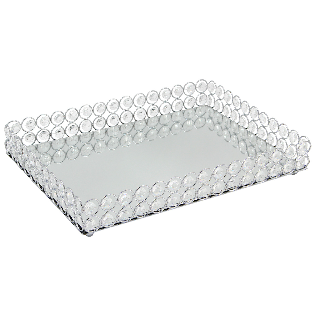 Δίσκος μεταλλικός ορθογώνιος 35Χ25Χ6 εκ. Ασημί με κρύσταλλα και καθρέπτη