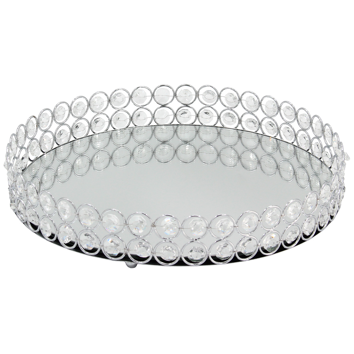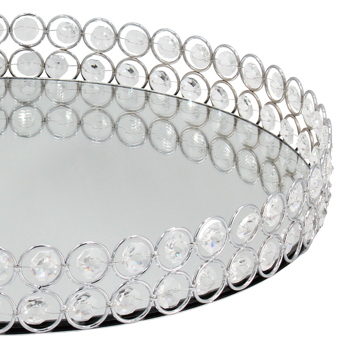Δίσκος μεταλλικός στρογγυλός Φ30Χ5,8 εκ. Ασημί με κρύσταλλα και καθρέπτη