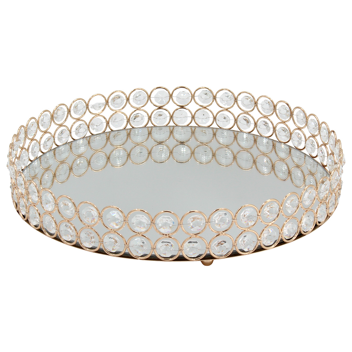 Αυτός ο δίσκος μεταλλικός στρογγυλός Φ30Χ5,8 εκ. σε χρυσό με κρύσταλλα και καθρέπτη χαρίζει λαμπερή πινελιά στον χώρο. Συνδυάζει διακόσμηση με πρακτικότητα.