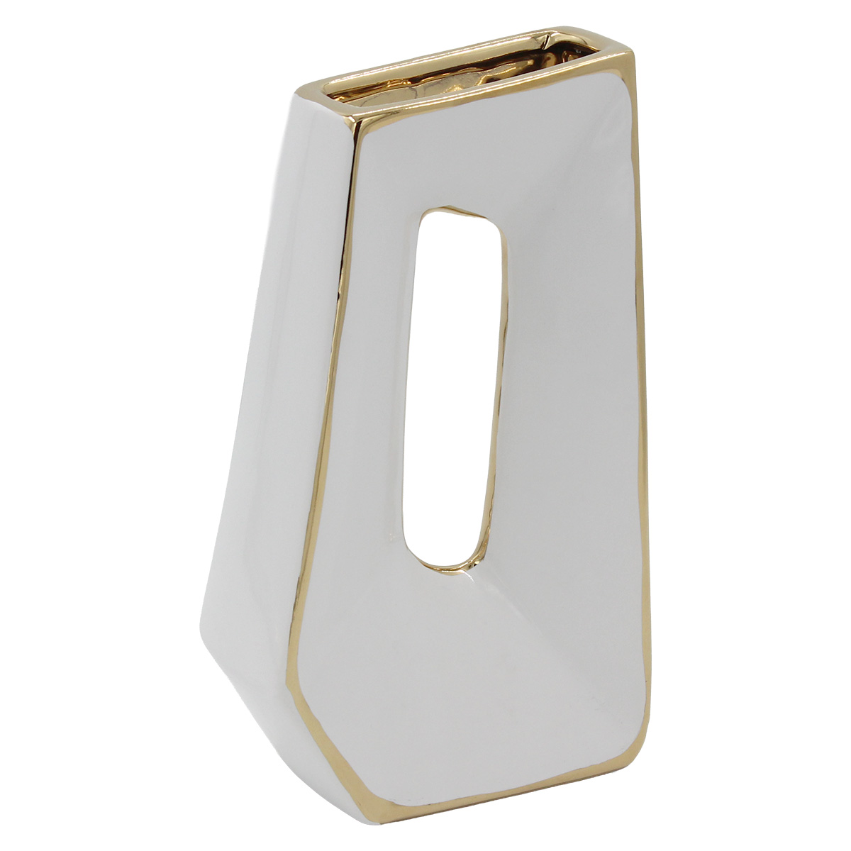 Αυτό το διακοσμητικό κεραμικό σε λευκό και χρυσό χρώμα 13Χ6,5Χ22 εκ. χαρίζει κομψότητα και φινέτσα. Ιδανικό για μικρούς χώρους.