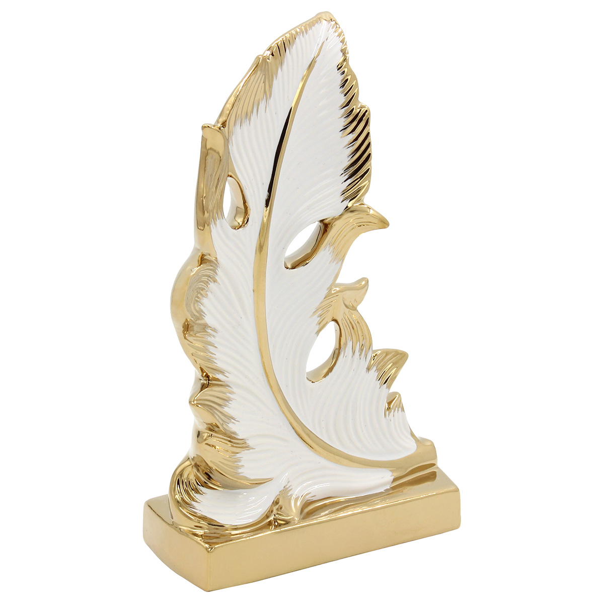 Διακοσμητικό κεραμικό 15Χ7Χ26 εκ. Φτερό Λευκό Χρυσό - KESKOR 78740