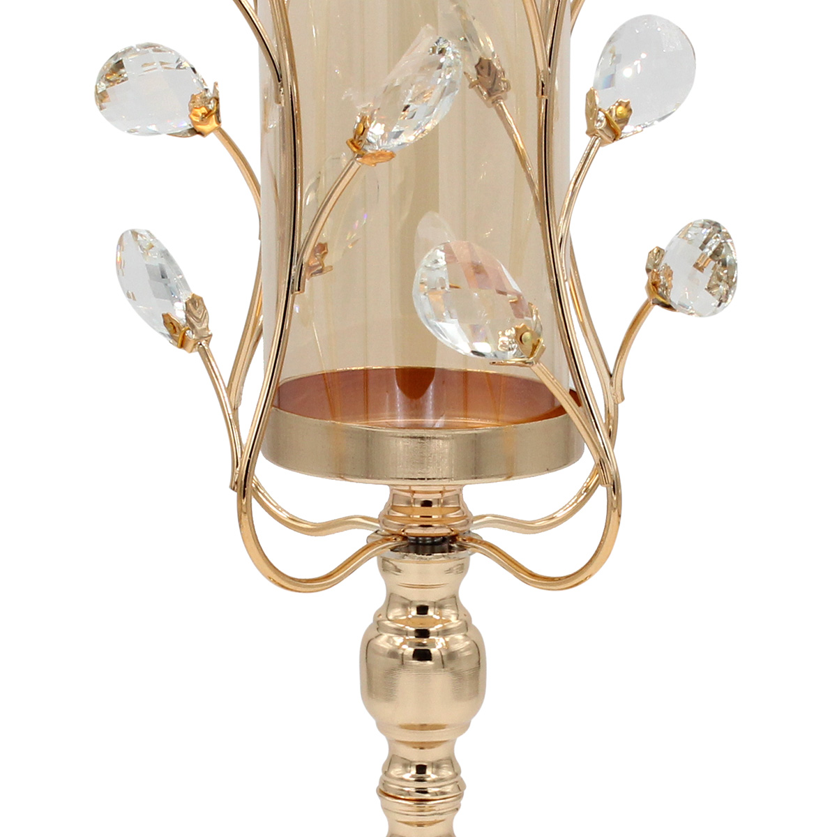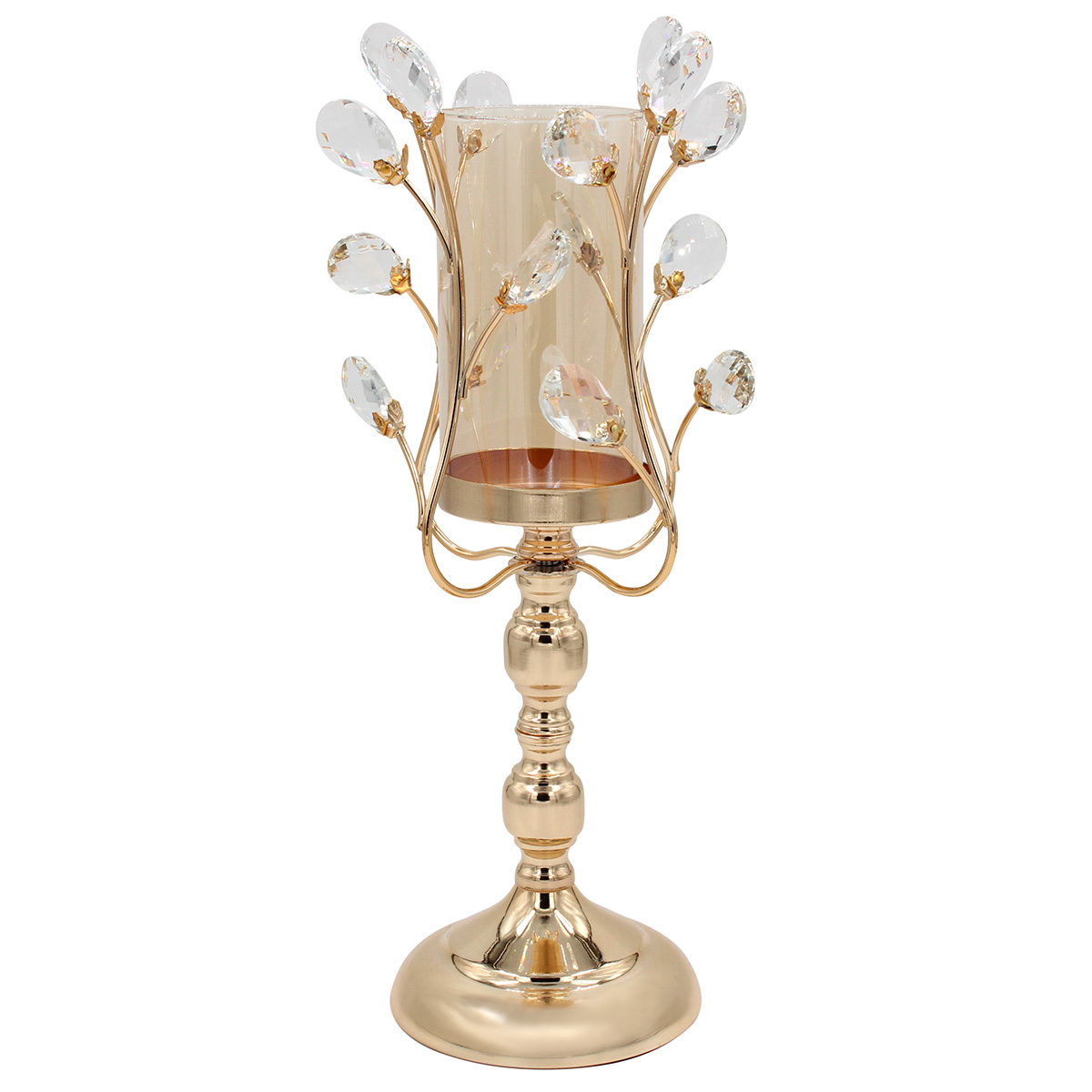 Διακοσμητικό μεταλλικό - κηροπήγιο Φ14Χ38 εκ. χρυσό με κρύσταλλα και γυαλί