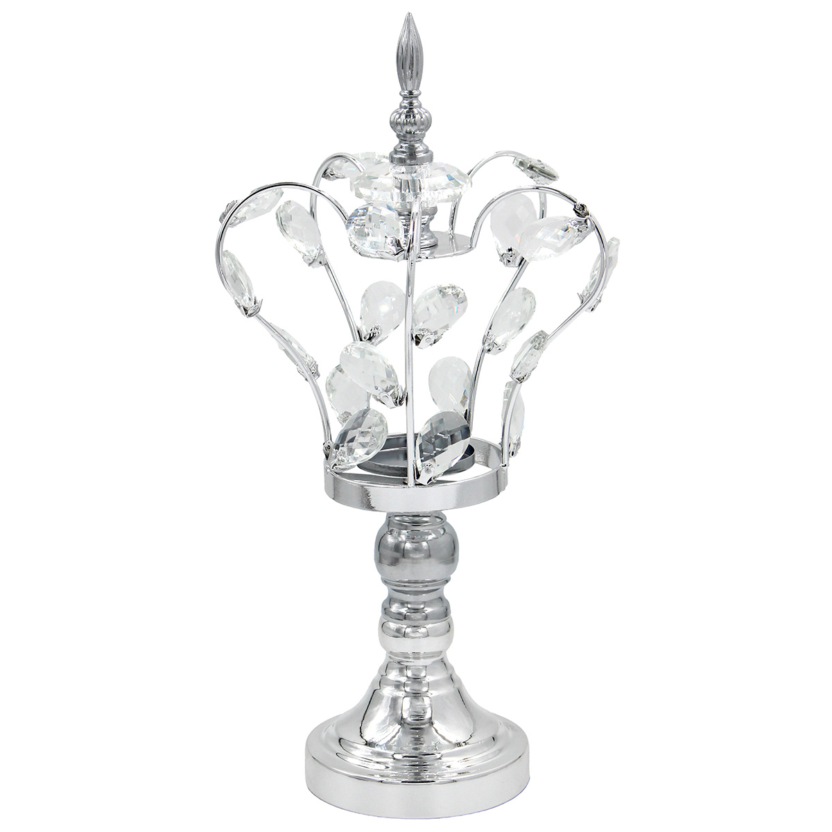 Διακοσμητικό μεταλλικό - κηροπήγιο Φ20Χ41 εκ. Κορώνα Ασημί με κρύσταλλα