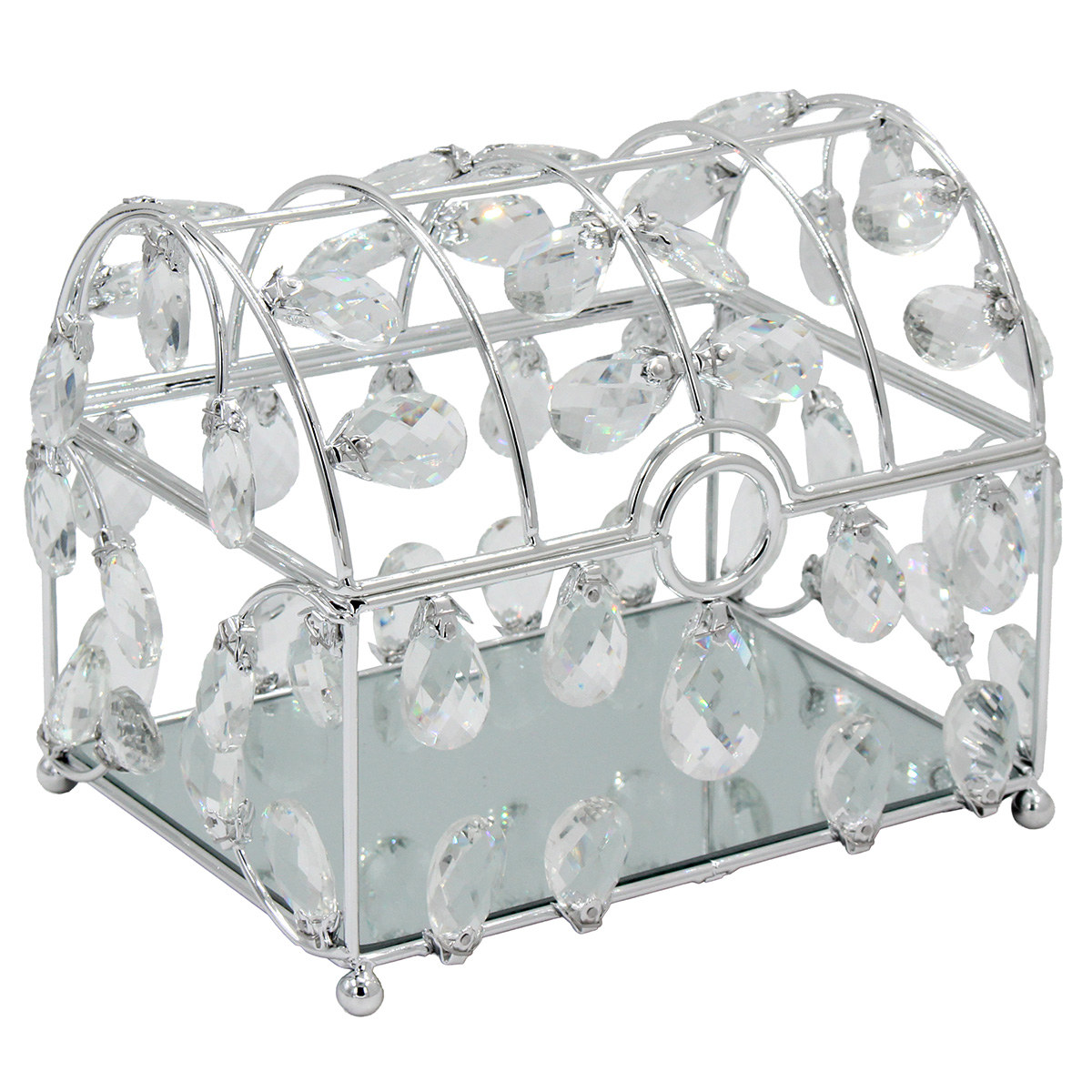 Διακοσμητικό μεταλλικό μπαούλο 23Χ16Χ19 εκ. Ασημί με καθρέπτη και κρύσταλλα