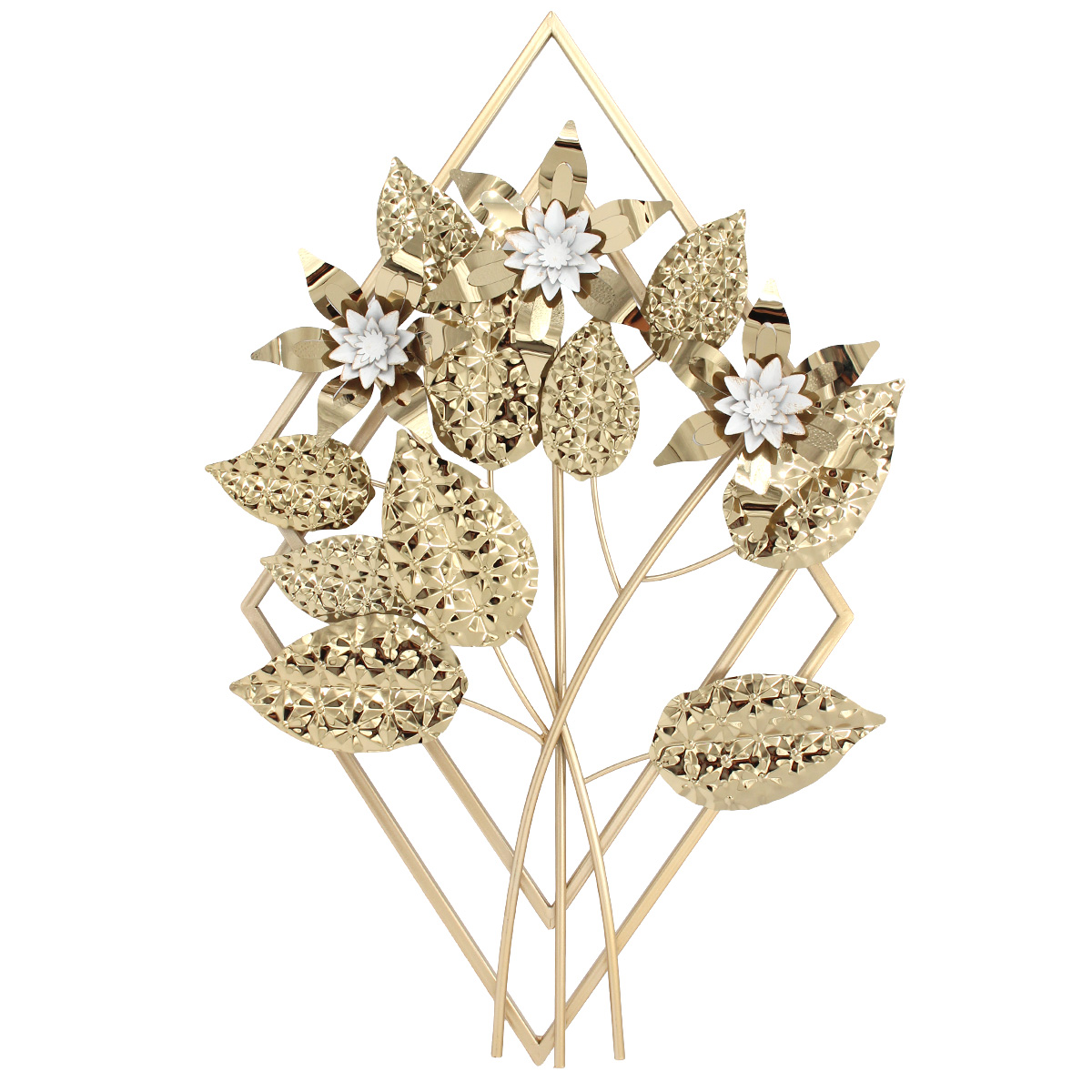 Διακοσμητικό μεταλλικό τοίχου 36Χ6Χ60 εκ. Χρυσό με Λουλούδια