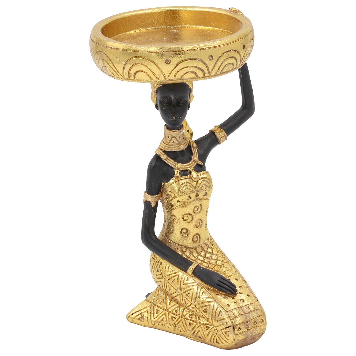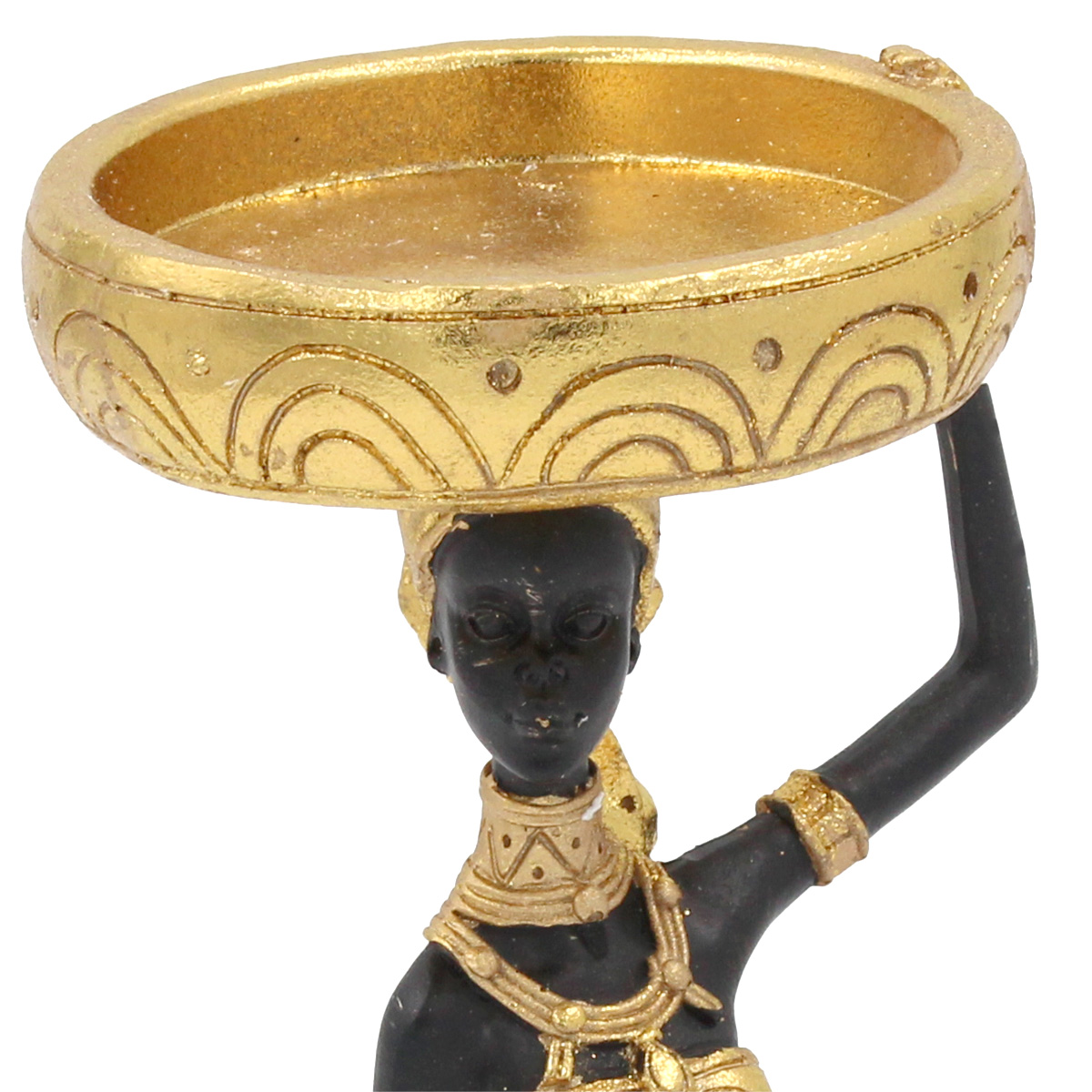 Αυτό το διακοσμητικό polyresin ethnic σε μαύρο χρυσό χρώμα, με διαστάσεις 11Χ9,5Χ18 εκ., συνδυάζει μοναδικό στυλ και πολιτισμικό χαρακτήρα.