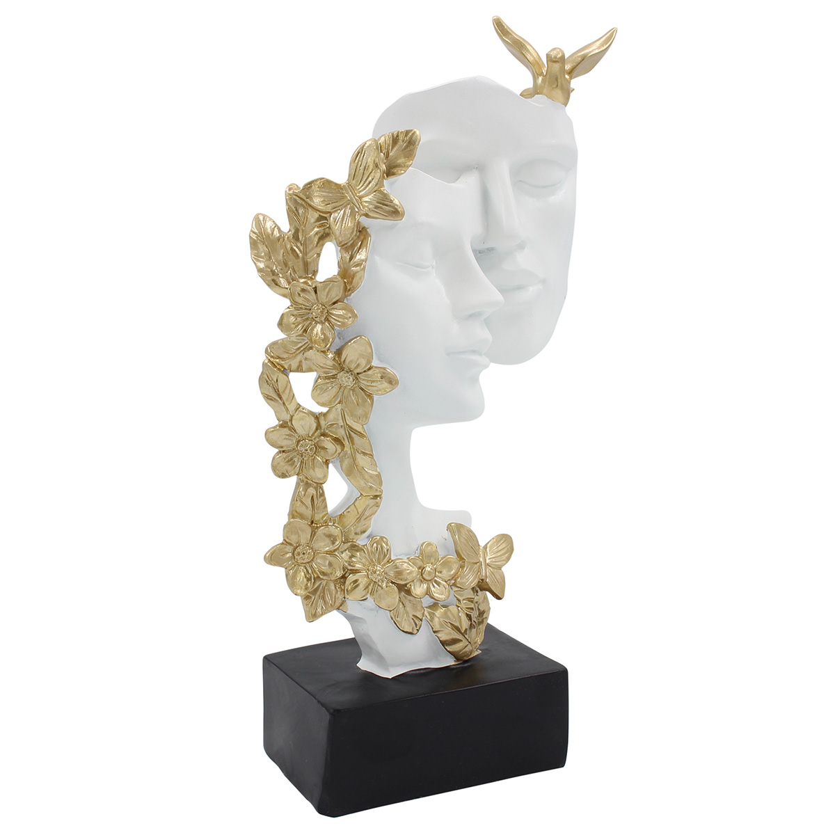 Διακοσμητικό polyresin 14Χ8Χ27 εκ. Ζευγάρι λευκό χρυσό με χρυσά λουλούδια και πεταλούδες.