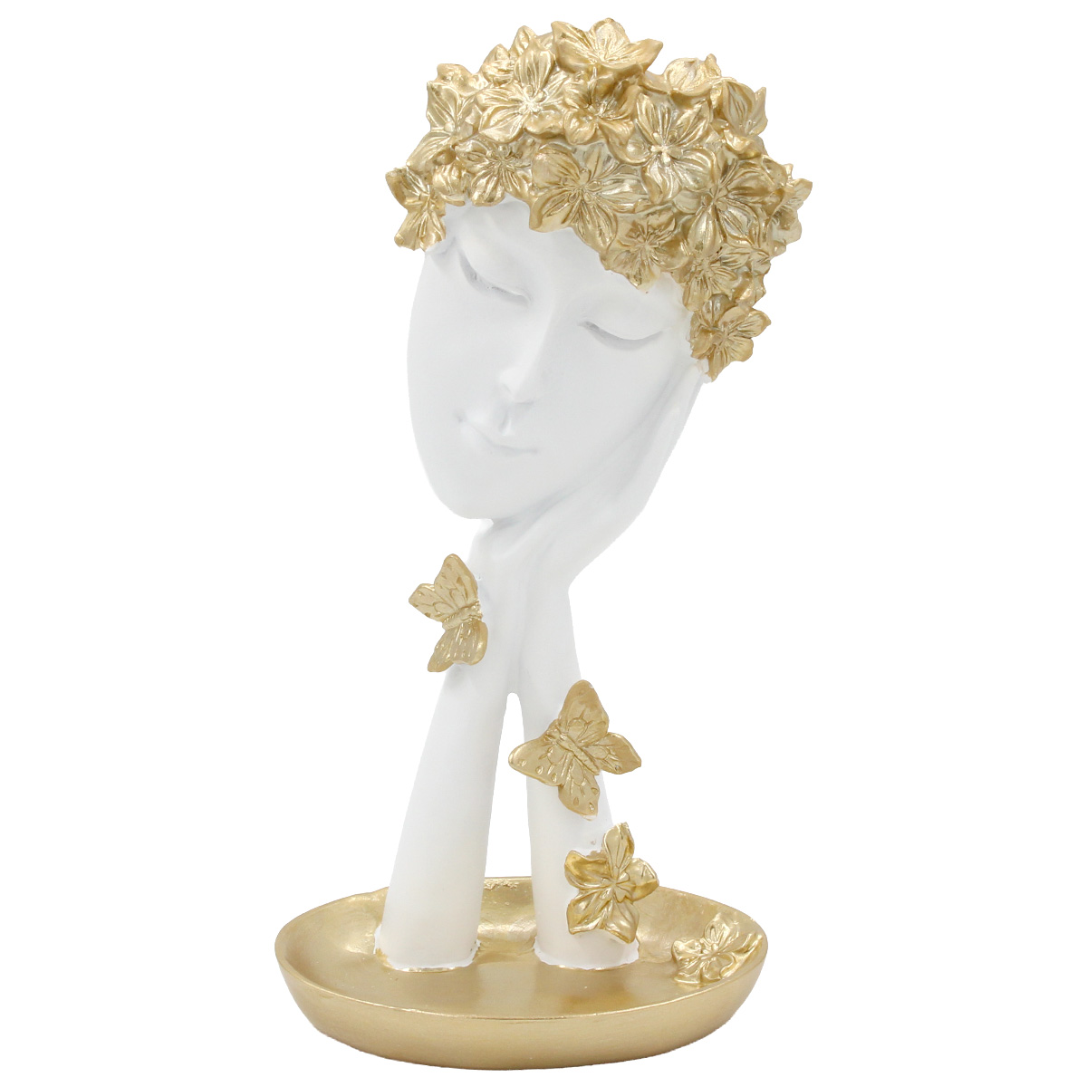 Αυτό το διακοσμητικό polyresin πρόσωπο σε λευκό χρυσό χρώμα, με διαστάσεις 14Χ9,5Χ28 εκ., αναδεικνύει μια minimal και εκλεπτυσμένη αισθητική.