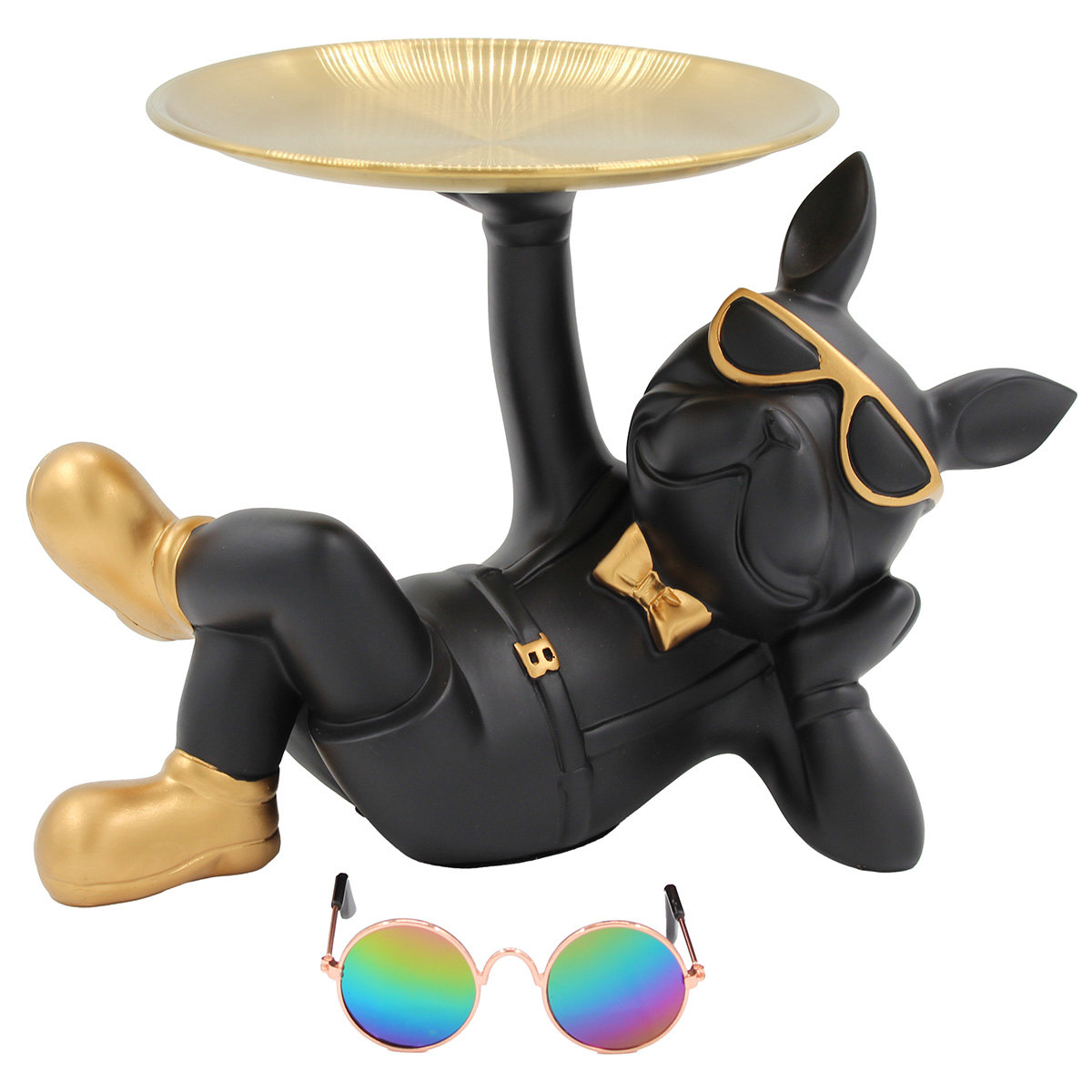 Διακοσμητικό polyresin 26Χ17Χ18 εκ. Σκύλος μαύρο χρυσό με μεταλλικό δίσκο