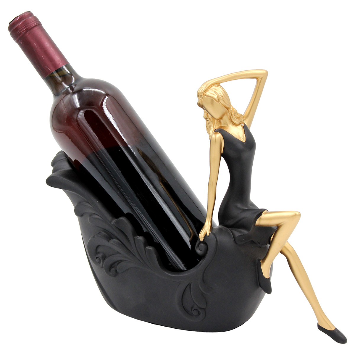 Διακοσμητικό Polyresin με θήκη για μπουκάλι 29Χ10Χ23 εκ. Γυναίκα Μαύρο Χρυσό