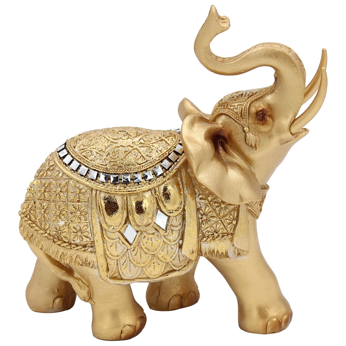 Αυτός ο ελέφαντας διακοσμητικός 15Χ6,5Χ15 εκ. από πολυρητίνη σε χρυσό χρώμα προσφέρει λάμψη και κομψότητα. Μικρός σε μέγεθος, αλλά εντυπωσιακός. Ιδανικός για ράφια και μπουφέδες.