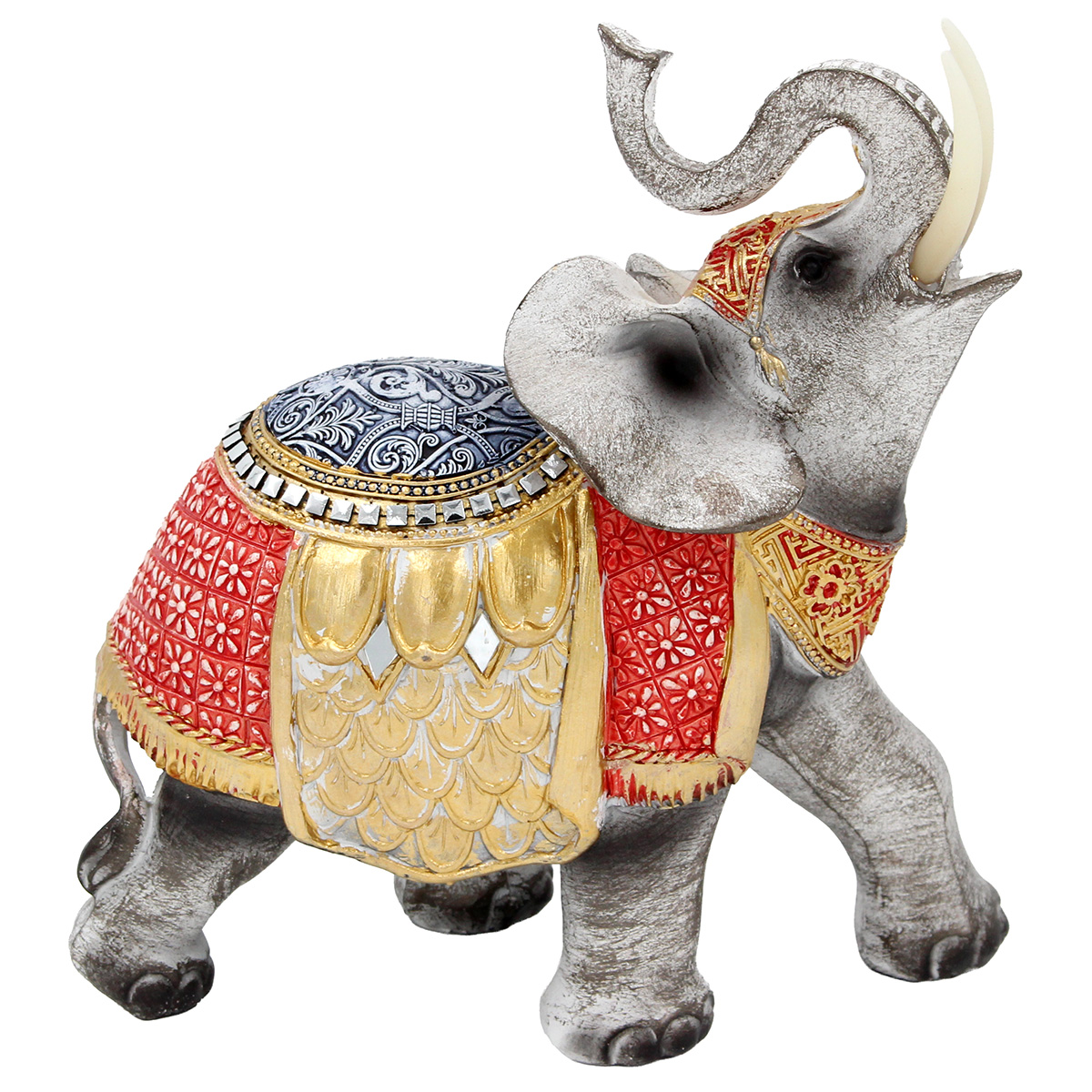 Ελέφαντας διακοσμητικός Polyresin 17Χ8Χ20 εκ. Γκρι Χρυσό Κόκκινο