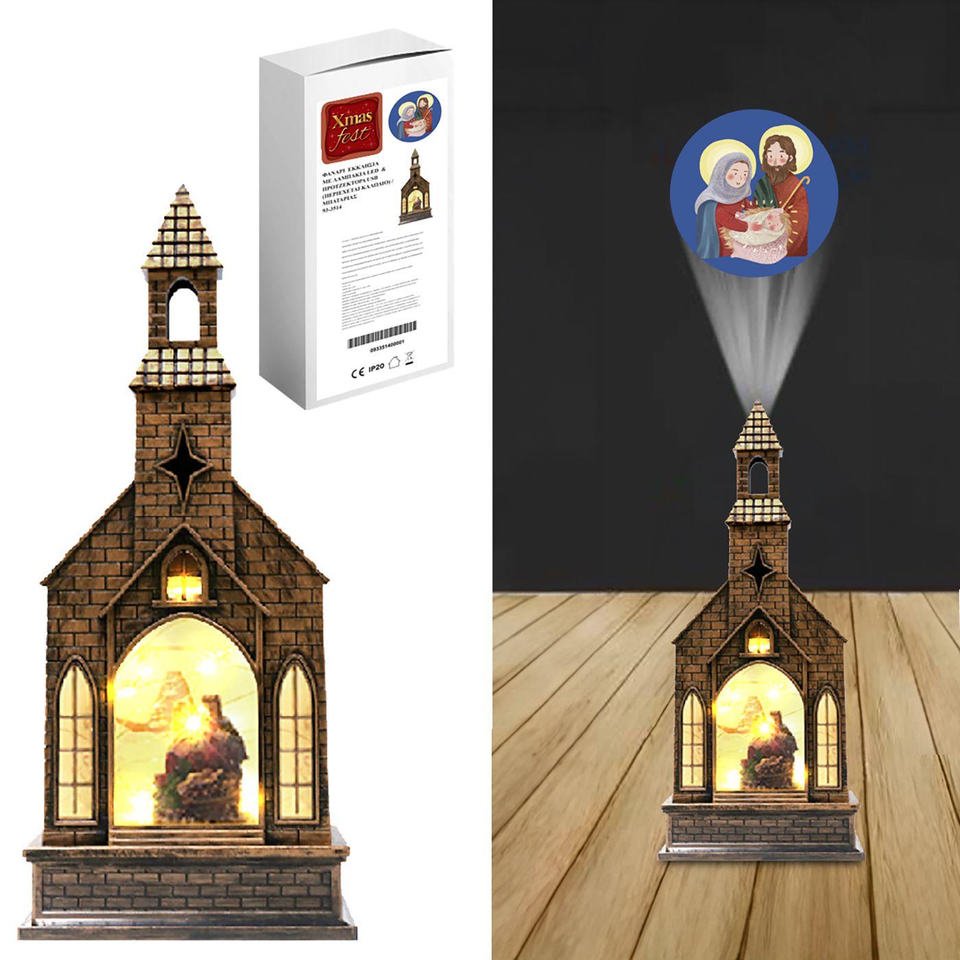 Φανάρι Εκκλησία με Λαμπάκια και Προτζέκτορα USB/μπαταρίας 31x13x8cm Xmasfest 1133534