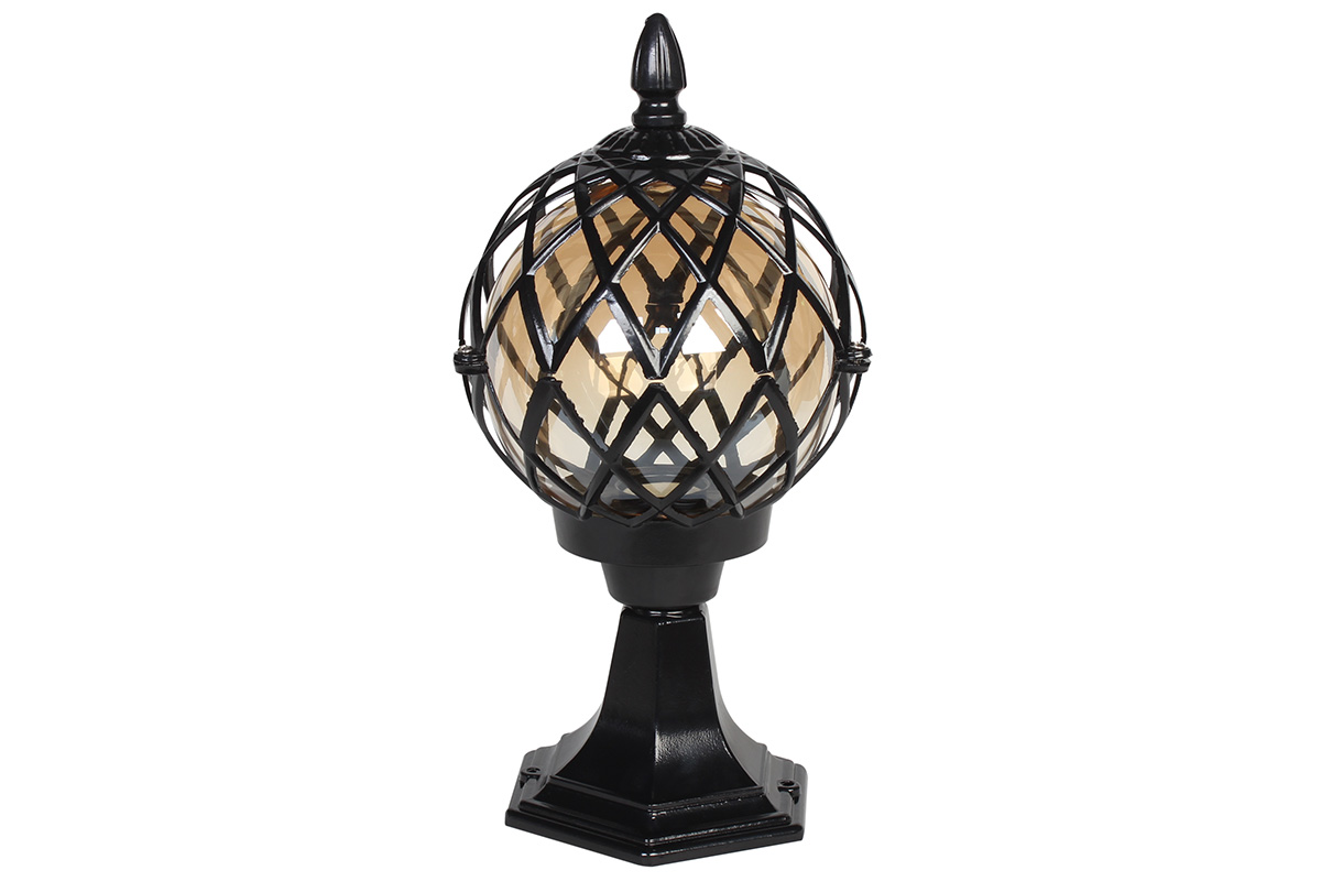Φωτιστικό δαπέδου αλουμινίου εξωτερικού χώρου Ε27 μαύρο με γυαλί μελί.
