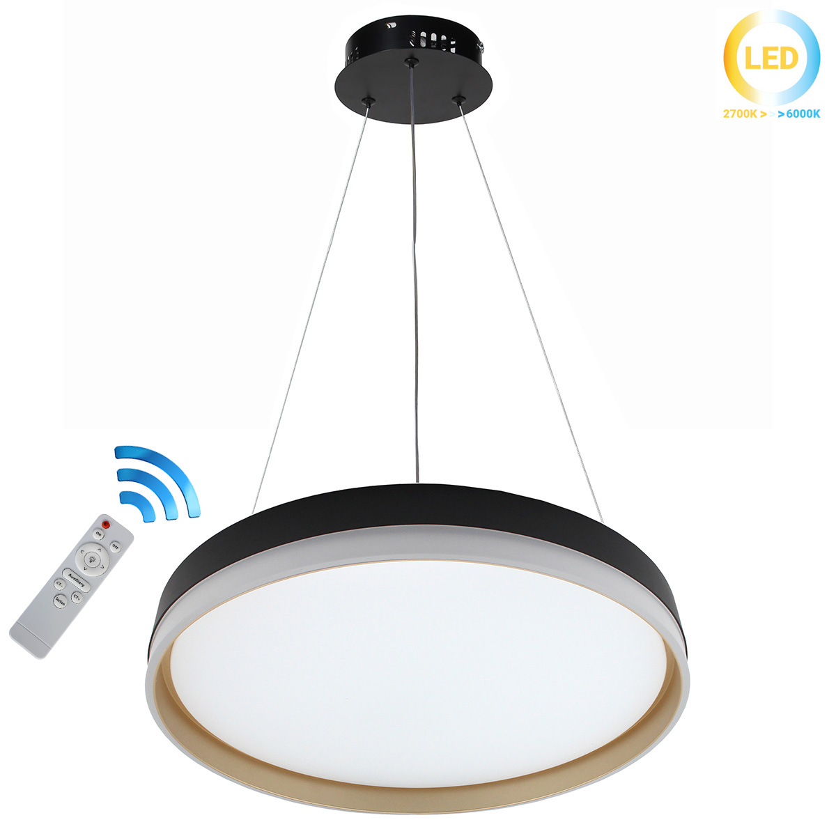 Φωτιστικό κρεμαστό - οροφής LED Φ49Χ7,5 εκ. 77W Μαύρο-Χρυσό με controller - KESKOR 508516