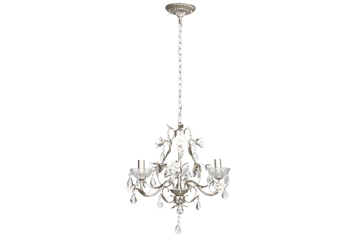 Φωτιστικό κρεμαστό 3 Χ Ε14 Φ50Χ50 εκ. Σαμπανί με κρύσταλλα και λευκά τριαντάφυλλα.