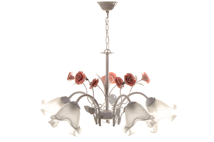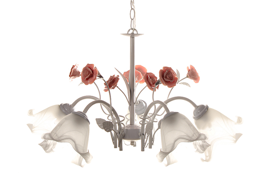 Φωτιστικό κρεμαστό 5 Χ Ε27 Φ58Χ35 εκ. χρ. Λευκό με τριαντάφυλλα και γυαλιά. Μέγιστο ύψος: 59 εκ.