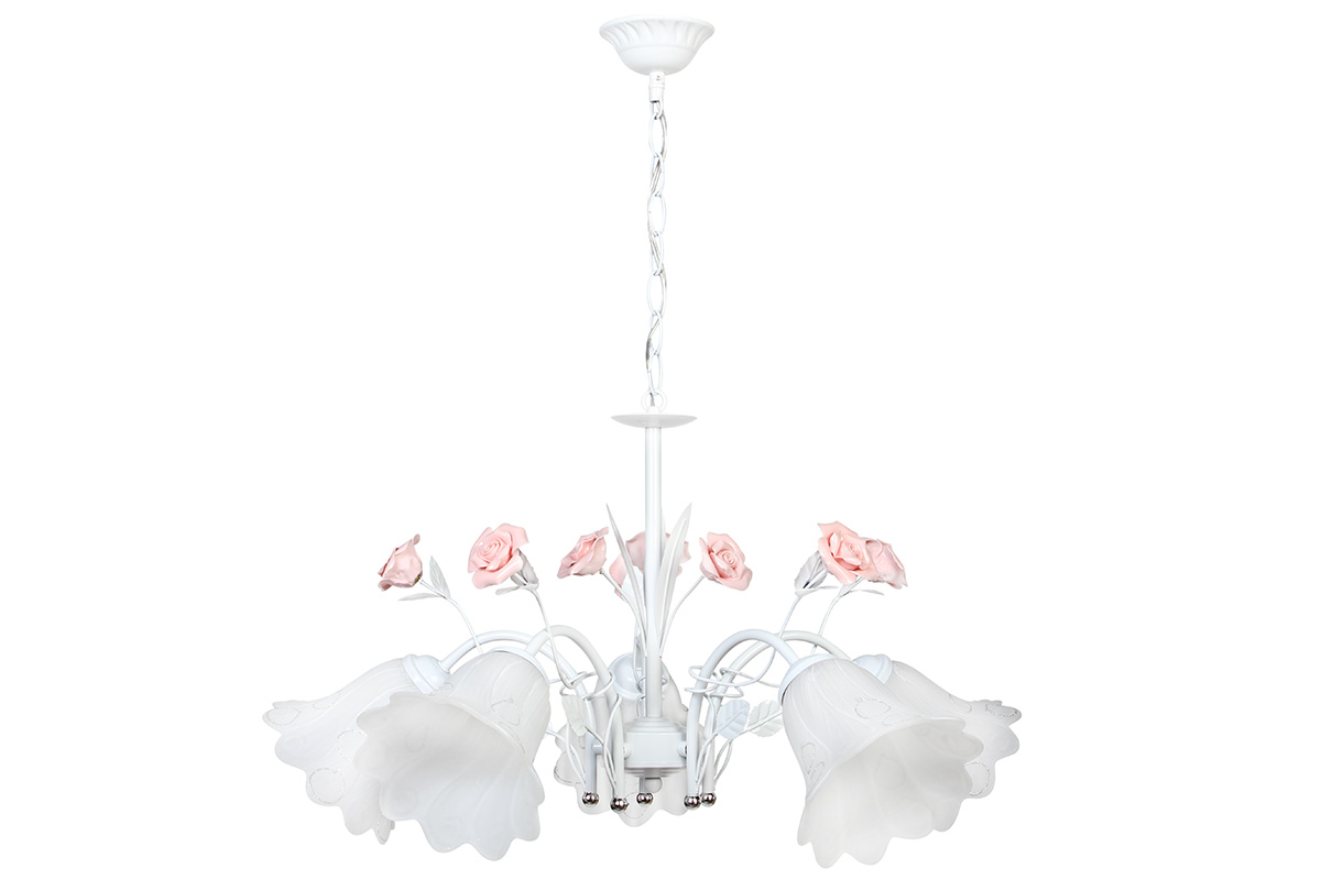Φωτιστικό κρεμαστό Φ64Χ34 εκ. 5 Χ Ε27 λευκό με γυαλιά και τριαντάφυλλα - KESKOR 4117/5 WH