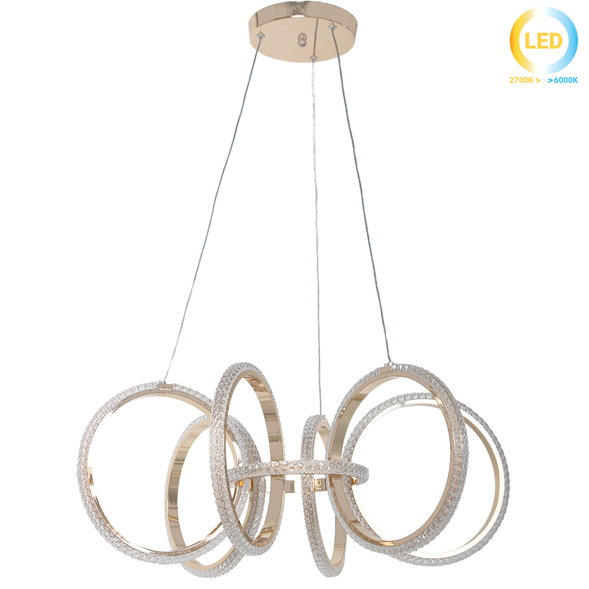 Φωτιστικό κρεμαστό LED 120W Φ69Χ27 εκ. Χρυσό με ακρυλικά - KESKOR 826673
