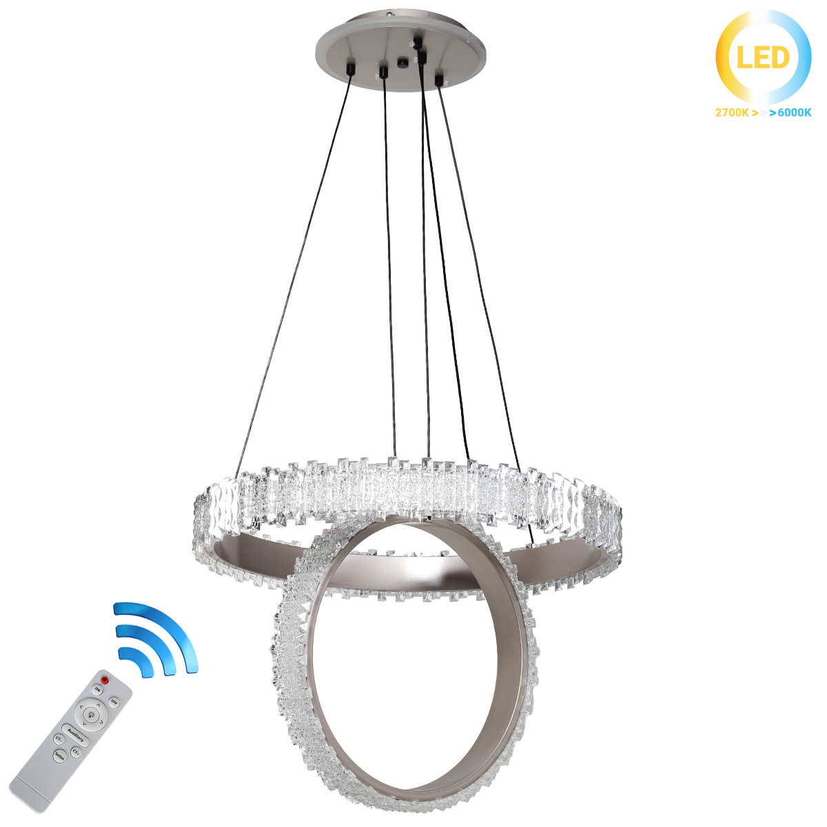Φωτιστικό κρεμαστό LED 130W Φ52-Φ38 εκ. Γκρι με ακρυλικά και controller - KESKOR 541000