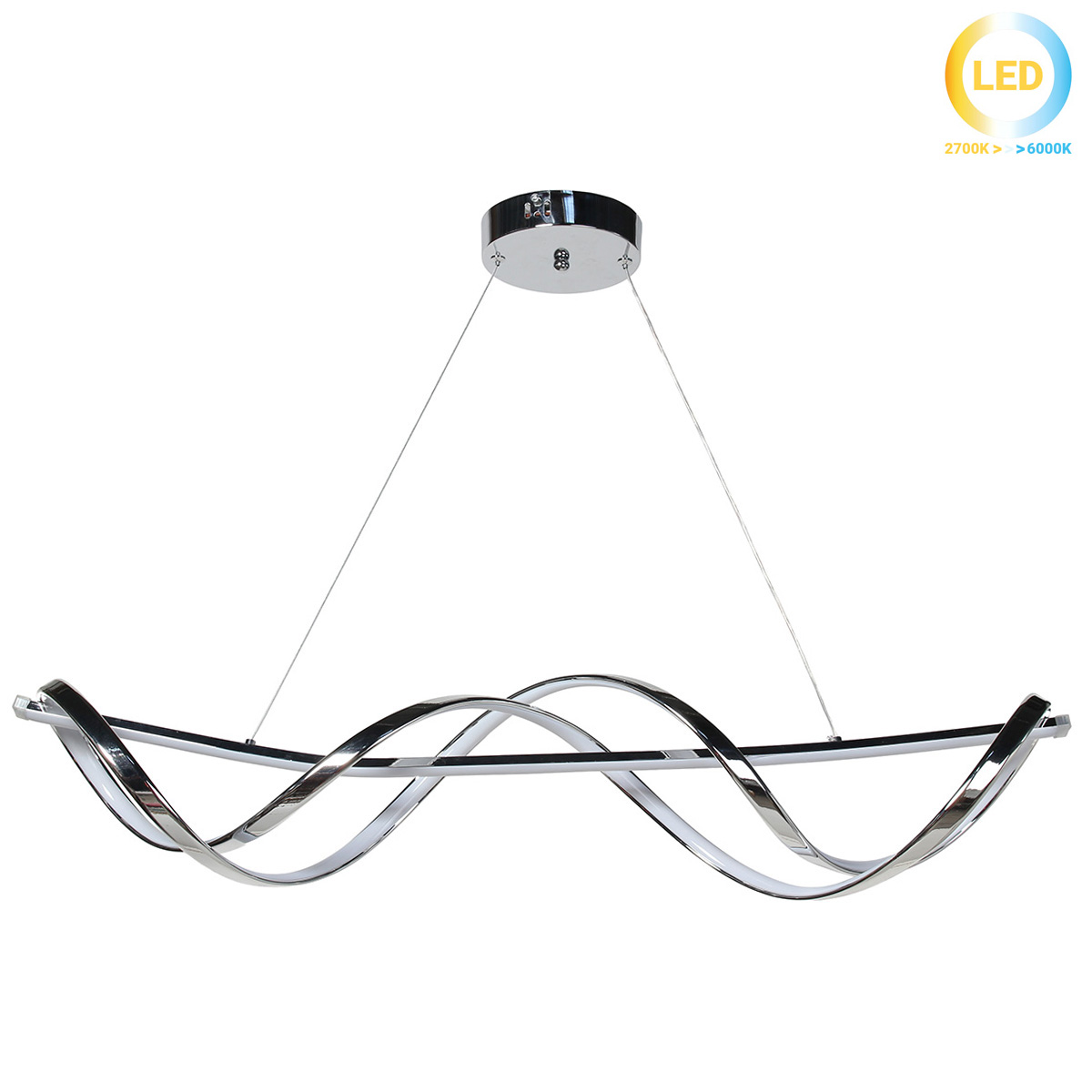 Αυτό το φωτιστικό κρεμαστό LED 84W 90Χ20Χ19 εκ. σε χρώμιο προσφέρει δυναμικό φωτισμό και μοντέρνα αισθητική για κάθε χώρο. Η δυνατότητα εναλλαγής χρώματος φωτισμού επιτρέπει πλήρη προσαρμογή της ατμόσφαιρας (Ψυχρό – Φυσικό – Θερμό). Αποτελεί ιδανική επιλογή για σαλόνια, τραπεζαρίες και επαγγελματικούς χώρους.