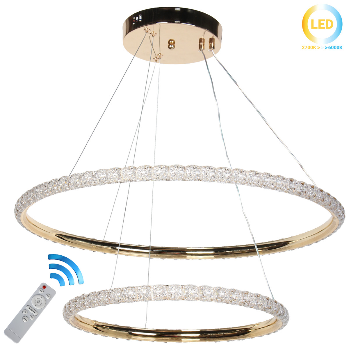 Φωτιστικό κρεμαστό LED 90W Φ60-Φ40 εκ. Χρυσό με ακρυλικό και Controller. Δυνατότητα εναλλαγής χρώματος φωτισμού (Ψυχρό - Φυσικό - Θερμό) Διαθέτει dimmer για αυξομείωση έντασης φωτισμού.