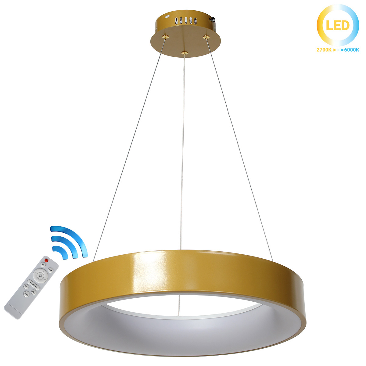 Φωτιστικό κρεμαστό LED Φ45Χ7 εκ. 65W Χρυσό με controller Διαθέτει controller. Δυνατότητα εναλλαγής χρώματος φωτισμού. (Θερμό - Φυσικό - Ψυχρό) Διαθέτει Dimmer για ρύθμιση έντασης φωτισμού.