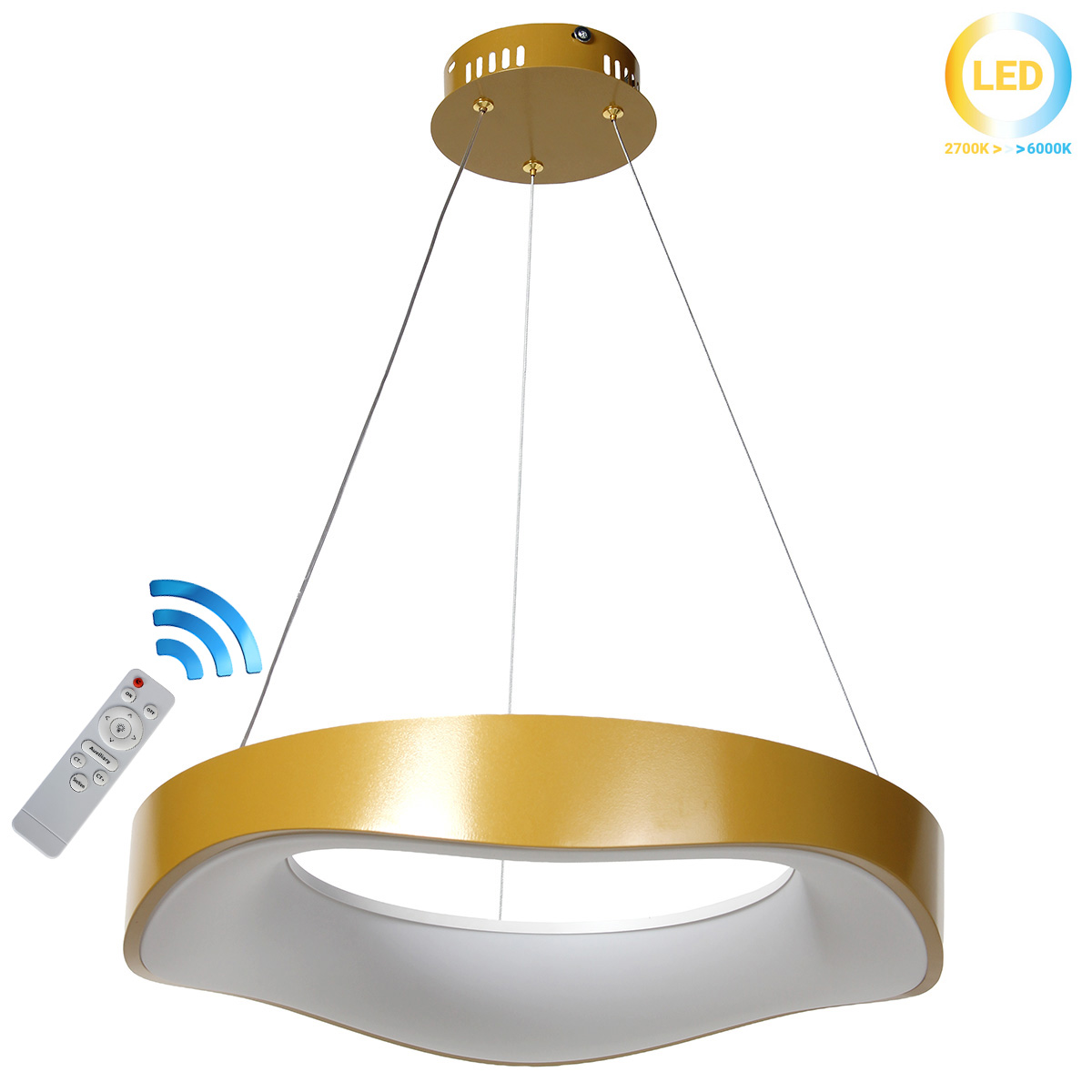 Φωτιστικό κρεμαστό LED Φ47Χ10 εκ. 66W Χρυσό με controller Διαθέτει controller. Δυνατότητα εναλλαγής χρώματος φωτισμού. (Θερμό - Φυσικό - Ψυχρό) Διαθέτει Dimmer για ρύθμιση έντασης φωτισμού.