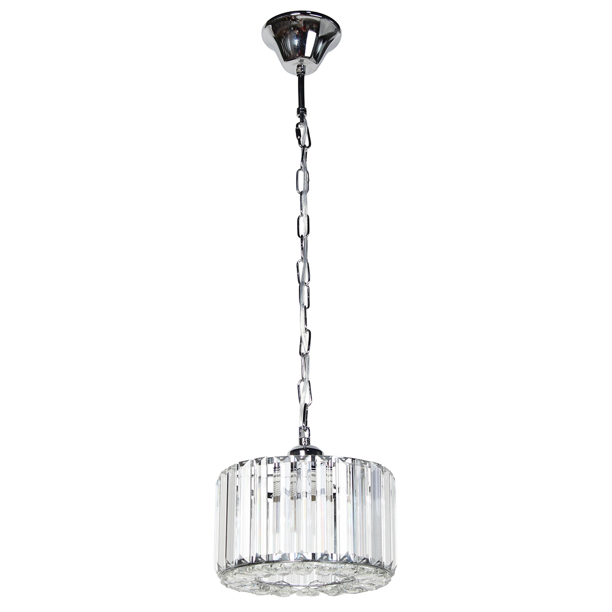 Φωτιστικό κρεμαστό μεταλλικό μονόφωτο Ε27 Φ21Χ13 εκ. Χρώμιο με γυαλιά και κρύσταλλα