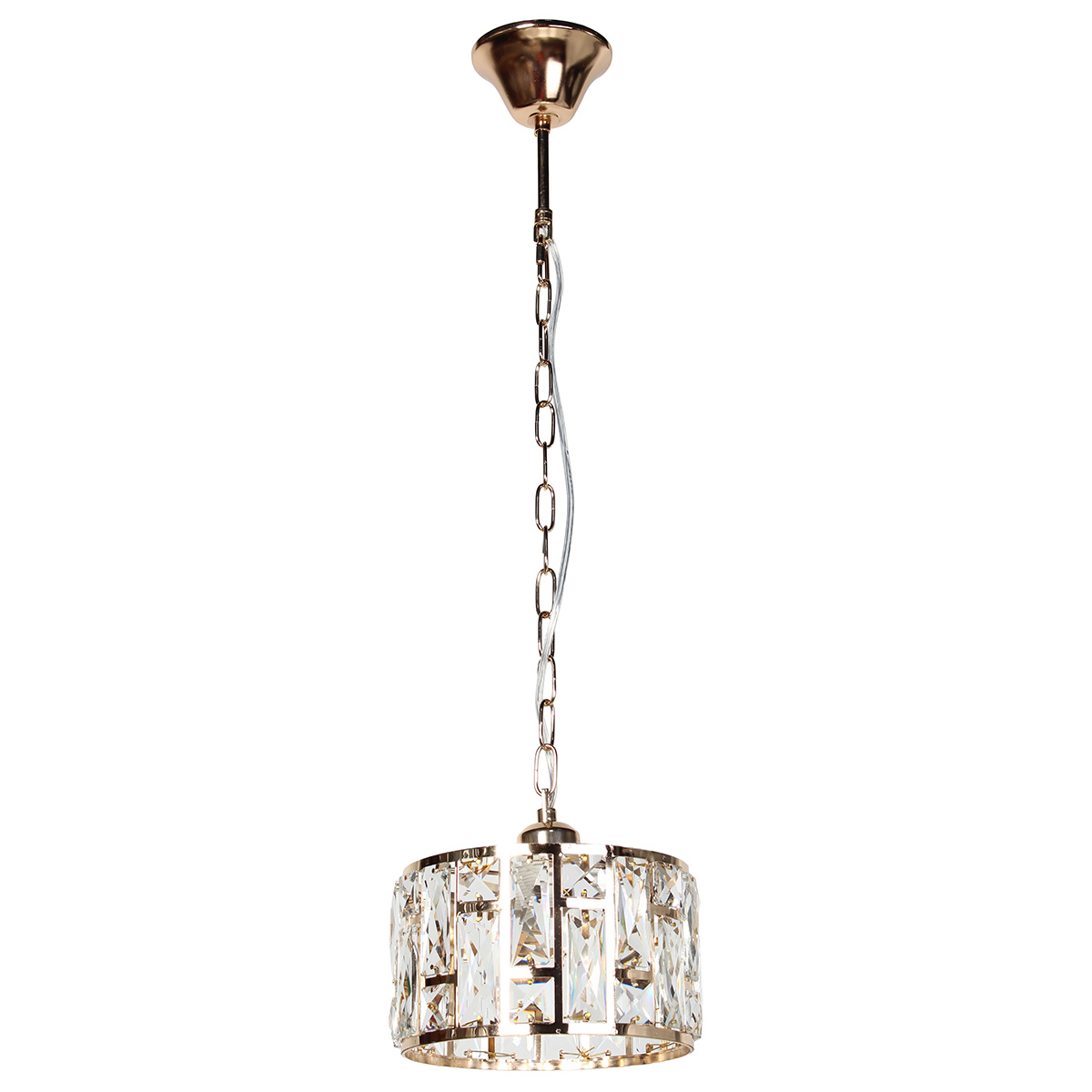 Φωτιστικό κρεμαστό μεταλλικό μονόφωτο Ε27 Φ21Χ13 εκ. Χρυσό με κρύσταλλα
