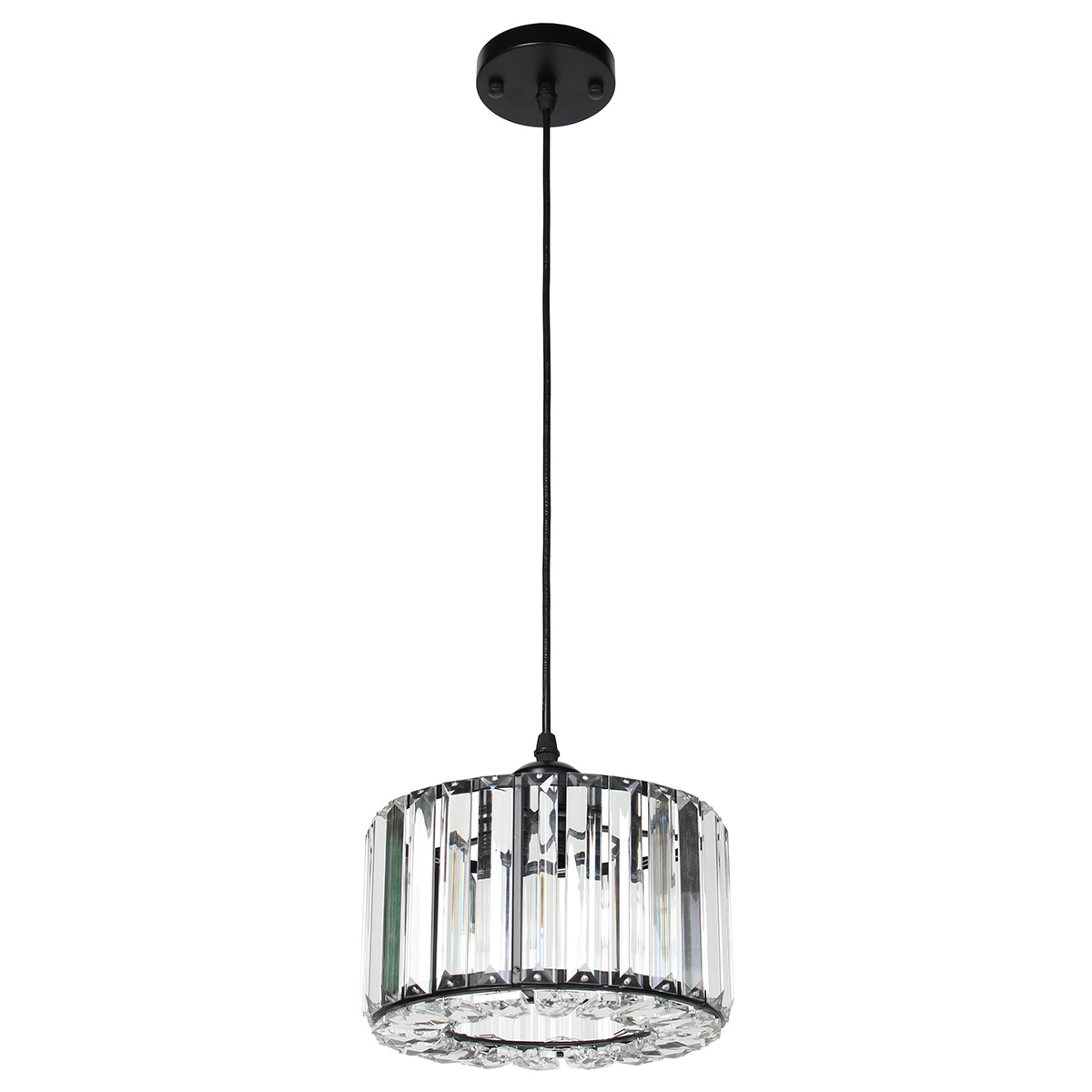 Φωτιστικό κρεμαστό μεταλλικό μονόφωτο Ε27 Φ21Χ13 εκ. Μαύρο με γυαλιά και κρύσταλλα