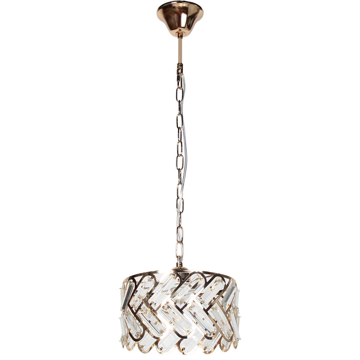 Αυτό το φωτιστικό κρεμαστό μεταλλικό μονόφωτο Ε27 Φ25Χ13 εκ. σε χρυσή απόχρωση με γυάλινα διακοσμητικά συνδυάζει κομψότητα και σύγχρονο ύφος. Η ανθεκτική μεταλλική δομή του εξασφαλίζει μακροχρόνια χρήση. Τα γυάλινα διακοσμητικά δημιουργούν φωτεινή και elegant ατμόσφαιρα.