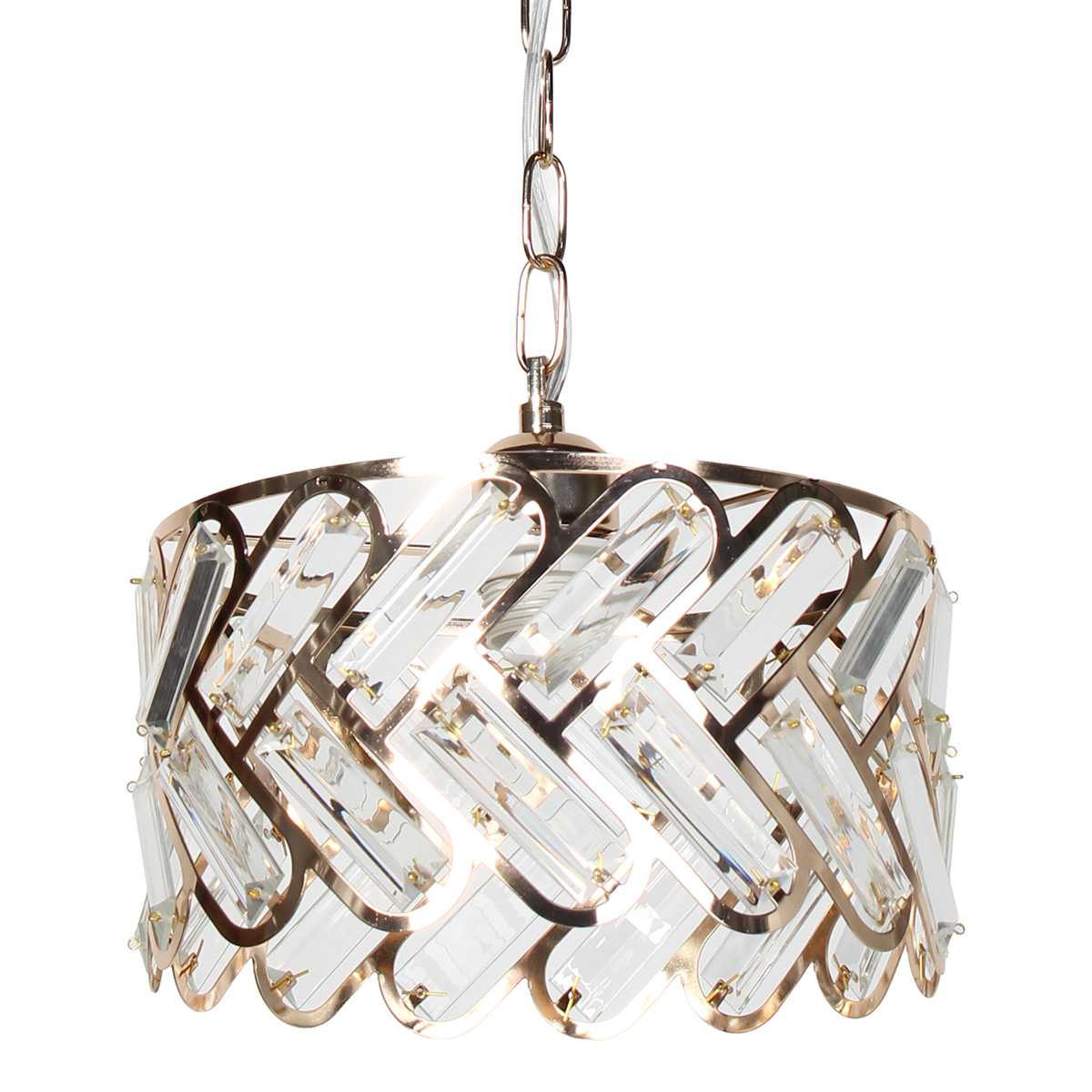 Φωτιστικό κρεμαστό μεταλλικό μονόφωτο Ε27 Φ25Χ13 εκ. Χρυσό με γυάλινα διακοσμητικά