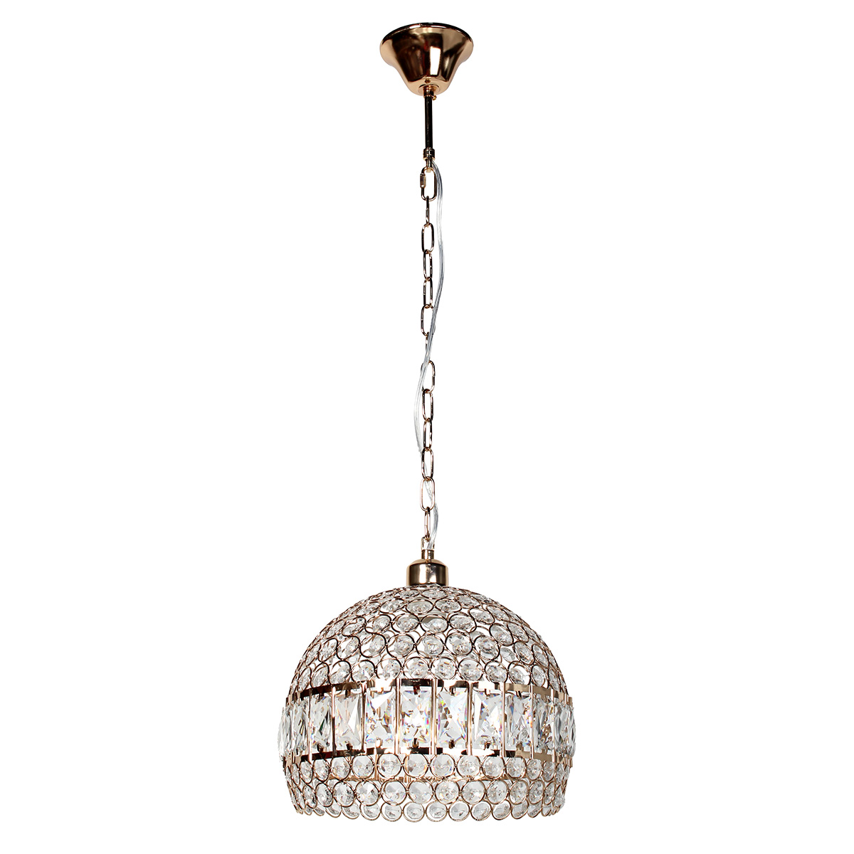 Φωτιστικό κρεμαστό μεταλλικό μονόφωτο Ε27 Φ30Χ23 εκ. Χρυσό με κρύσταλλα