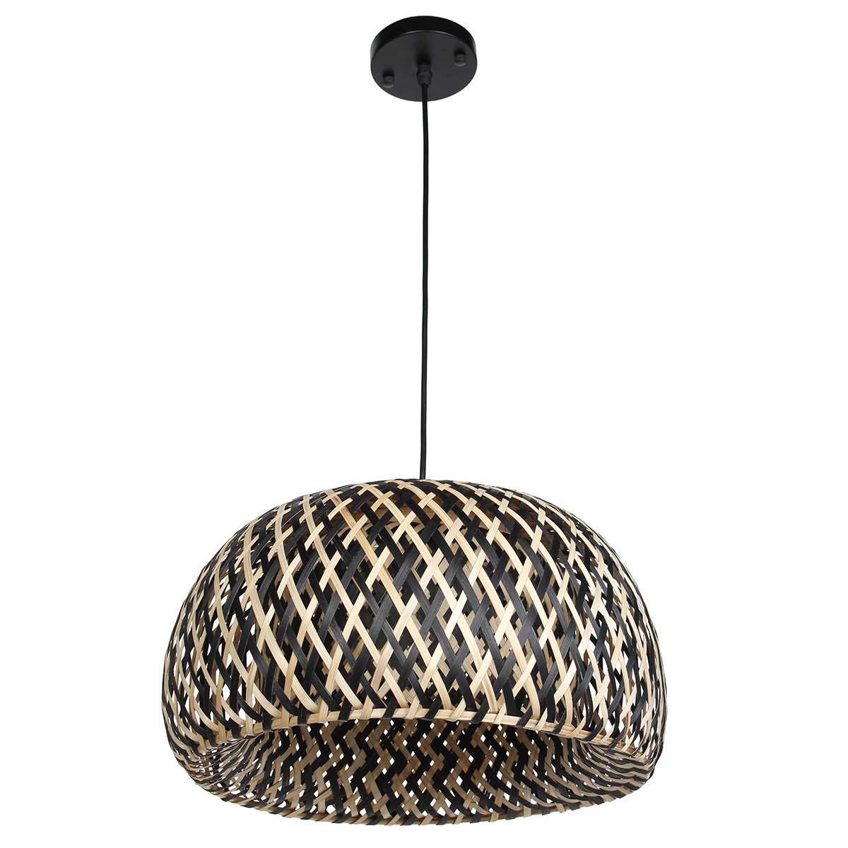 Φωτιστικό κρεμαστό μονόφωτο μπαμπού Ε27 Φ38Χ20 εκ. Μαύρο Μπεζ