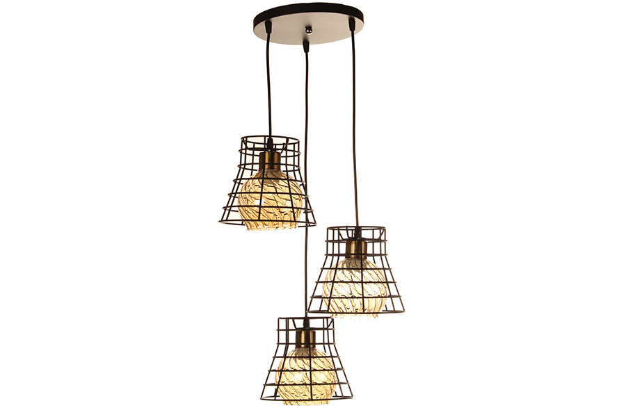 Φωτιστικό μεταλλικό άνισο 3 Χ Ε27 Vintage χρ. Μαύρο