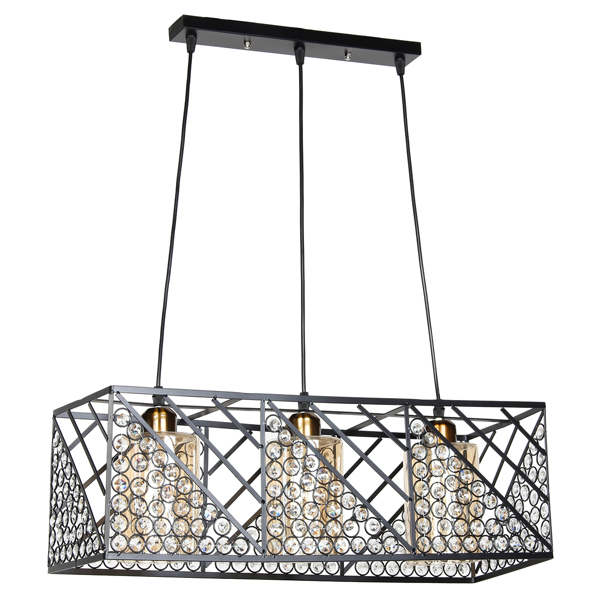 Φωτιστικό μεταλλικό κρεμαστό 3 Χ Ε27 60Χ20Χ20-90 εκ. Μαύρο με γυαλιά και κρύσταλλα